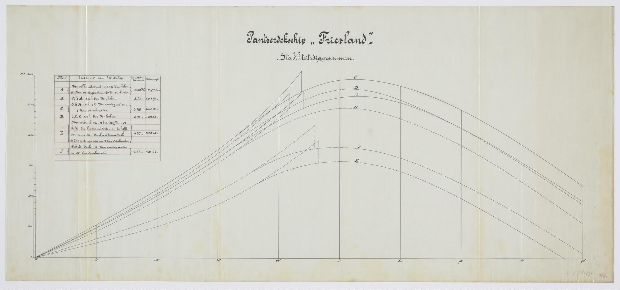 Stabiliteitsdiagram van het pantserdekschip Hr.Ms. 'Friesland'