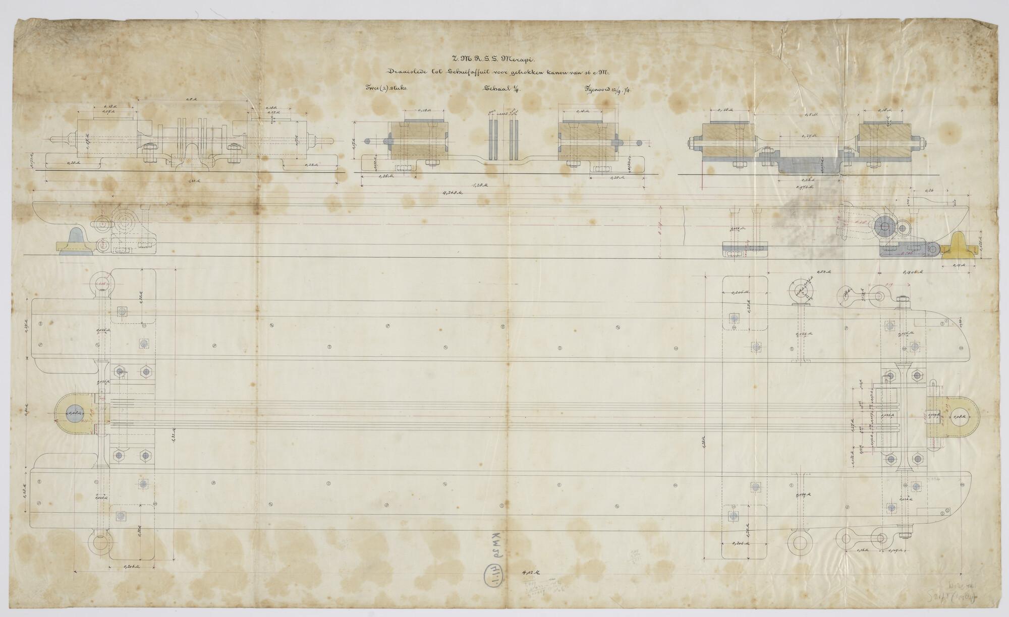 Draaislede tot schuifaffuit voor kanon 16 cm van Zr.Ms. raderstoomschip 'Merapi'.