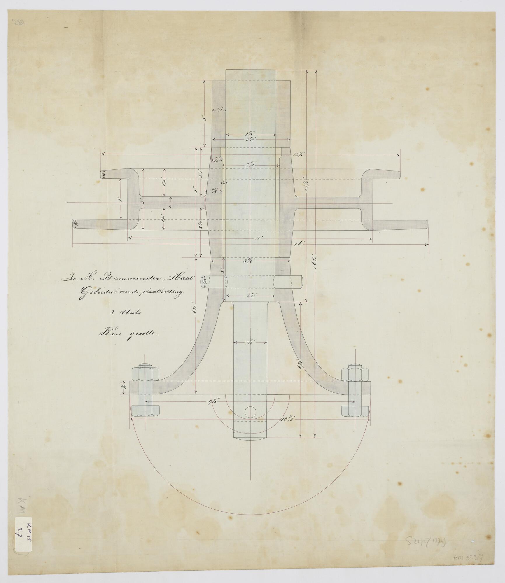 De geleidrol voor de plaatketting als onderdeel van het roer van de rammonitor 2de klasse Zr.Ms. Haai (schaal in ware grootte).