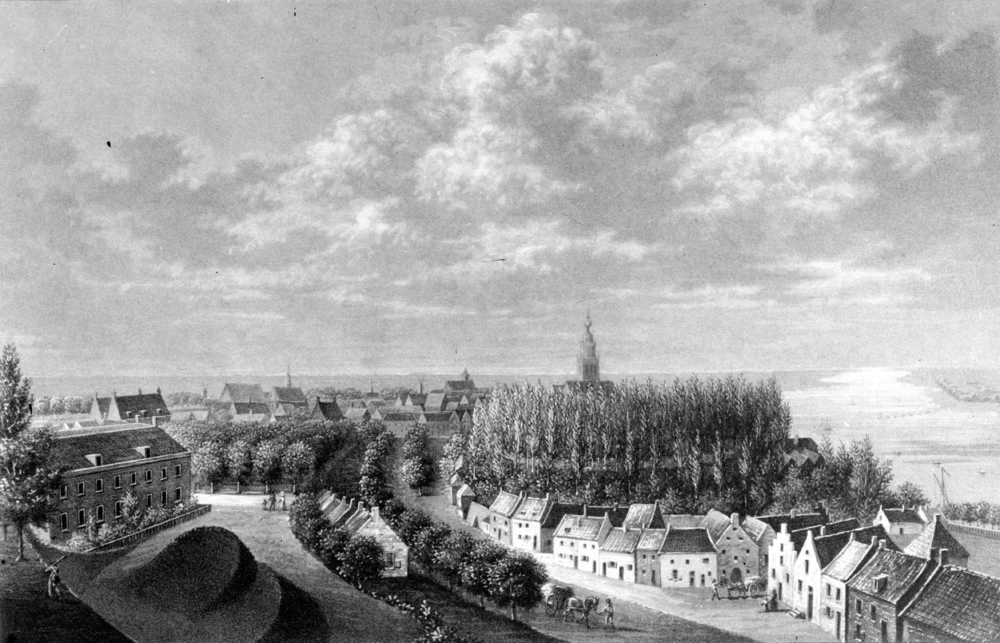 Gezicht vanaf het water op de Moerdijk bij Willemsdorp