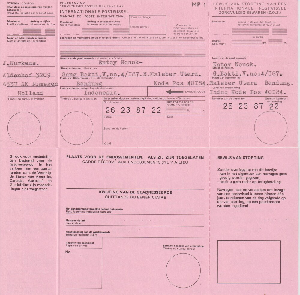Stortingsformulieren J. Hurkens Nijmegen Holland