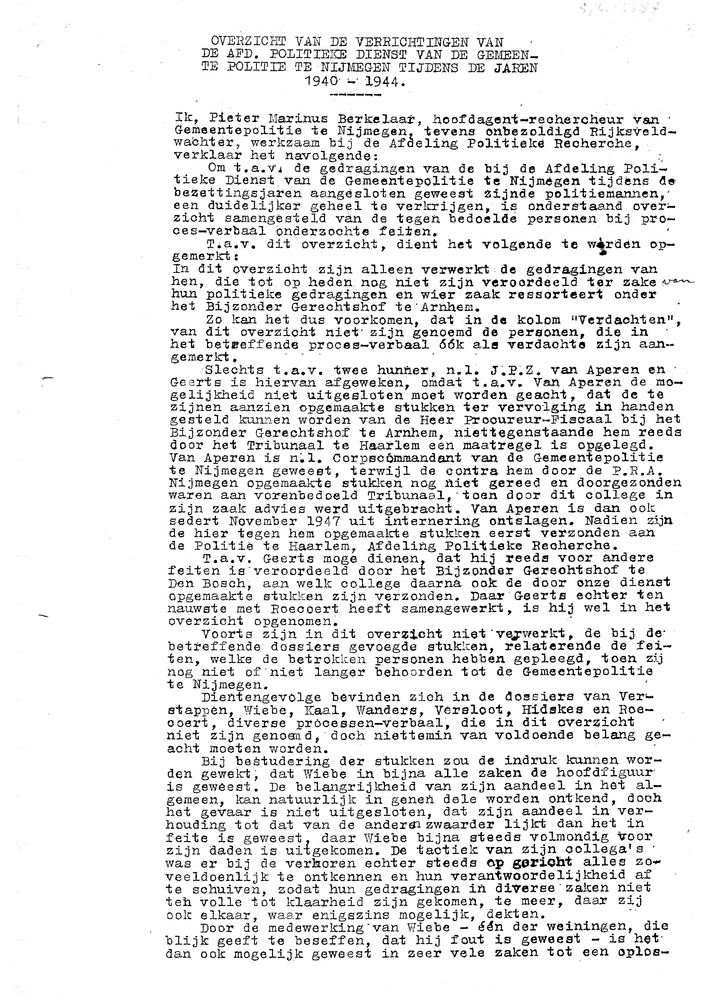 Overzicht van de verrichtingen van de Afd. Politieke...