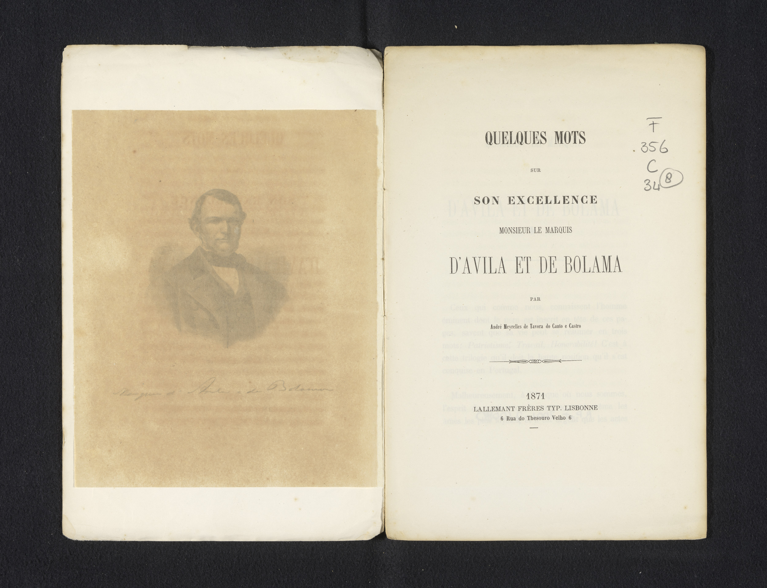 vermeld op object Meyrelles de Tavora do Canto e Castro, André