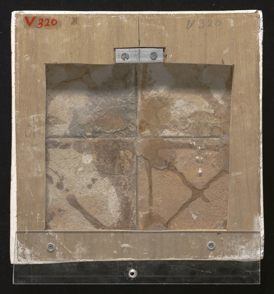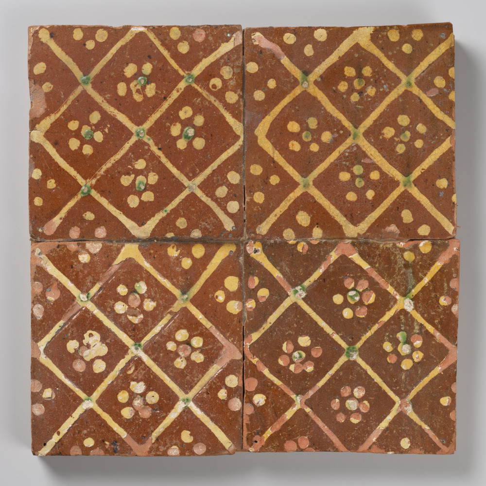 tegelveld van vier tegels van aardewerk in inlegtech...