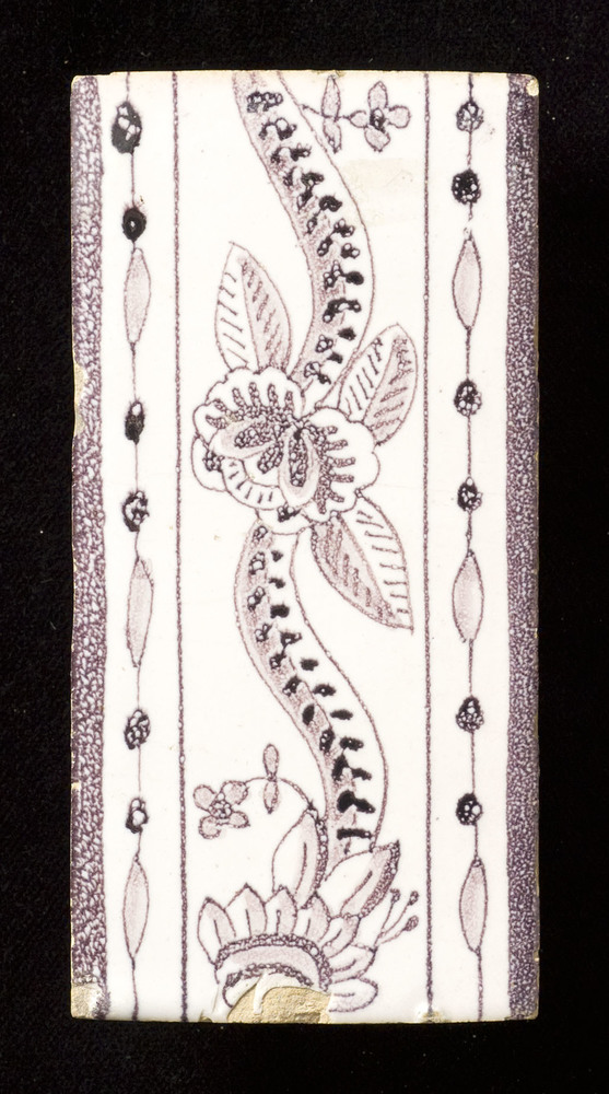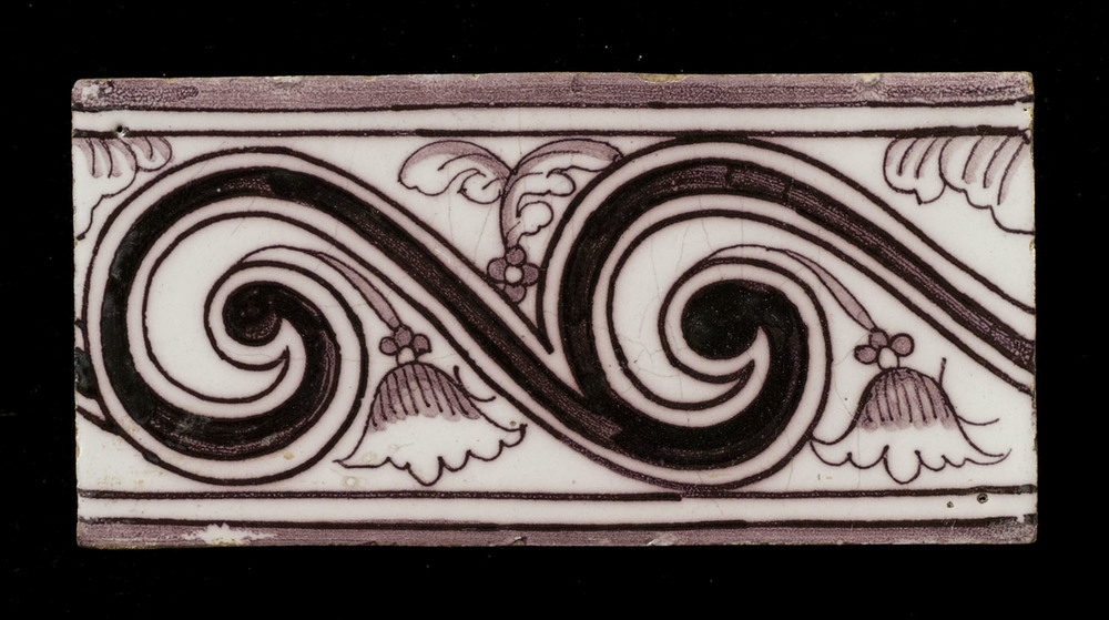 Randtegel in tinglazuur, voorstellende bloemrandje, ...