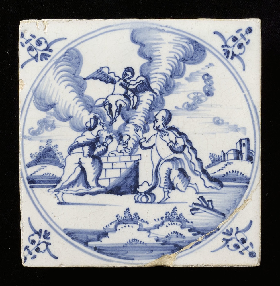 Tegel van keramiek met tinglazuur, voorstellende: or...