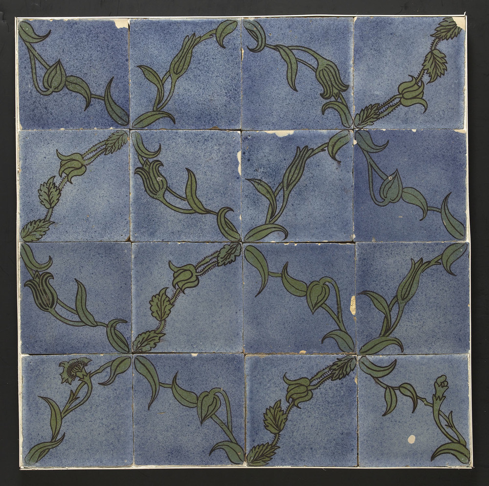 Tegelveld van keramiek, tinglazuur, voorstellende ee...