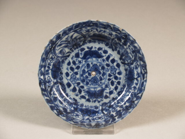 Schotel met golvende rand, blauw geglazuurd, met dec...