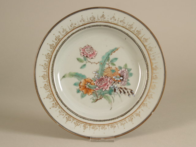 Bord met decor van bloeiende takken, famille rose