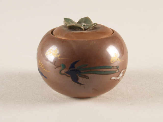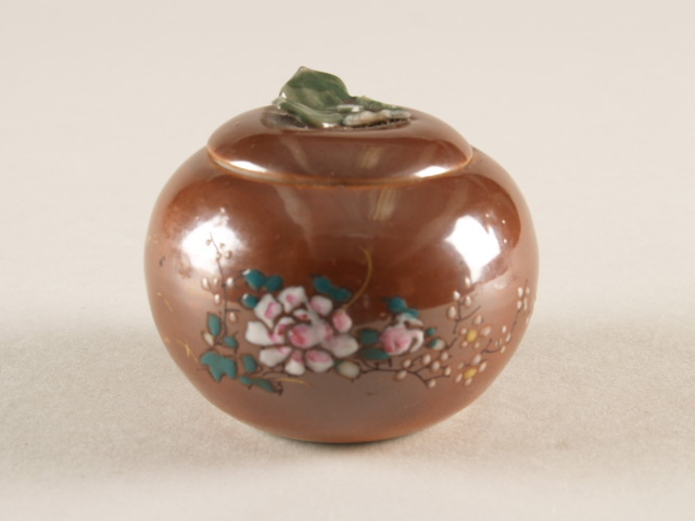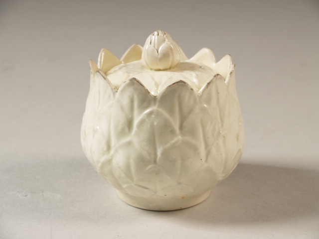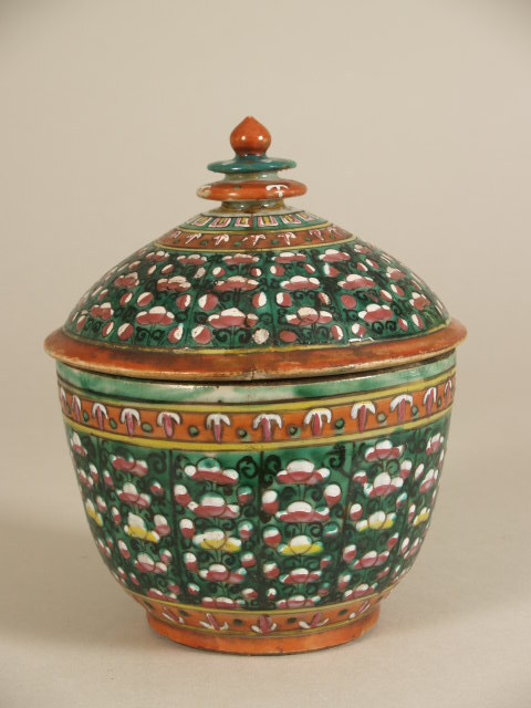 Potje met deksel in de vorm van een vrucht en decor ...