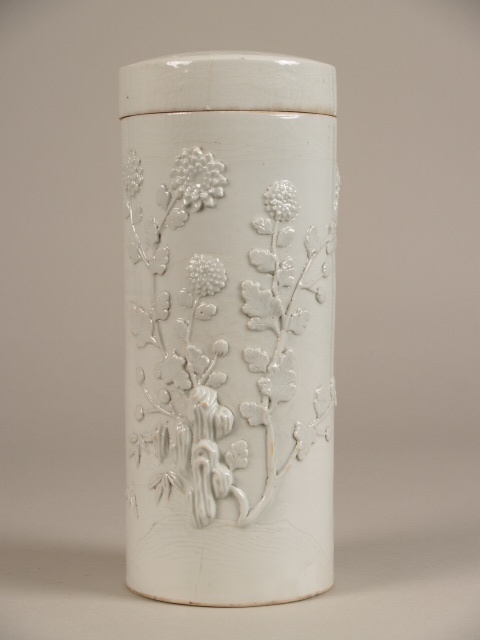 Pot met deksel met decor van bloemranken in reliëf, ...