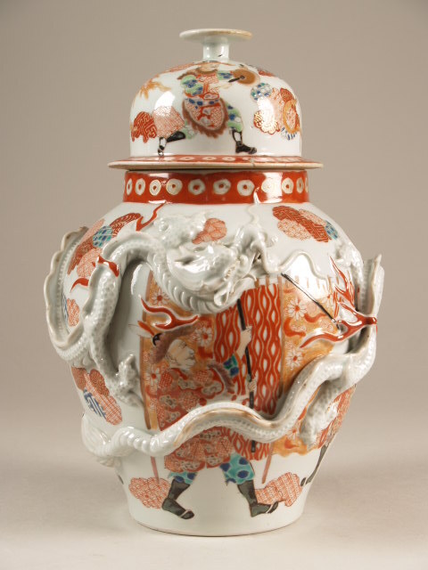 Pot met deksel en decor van figuur en in reliëf een ...