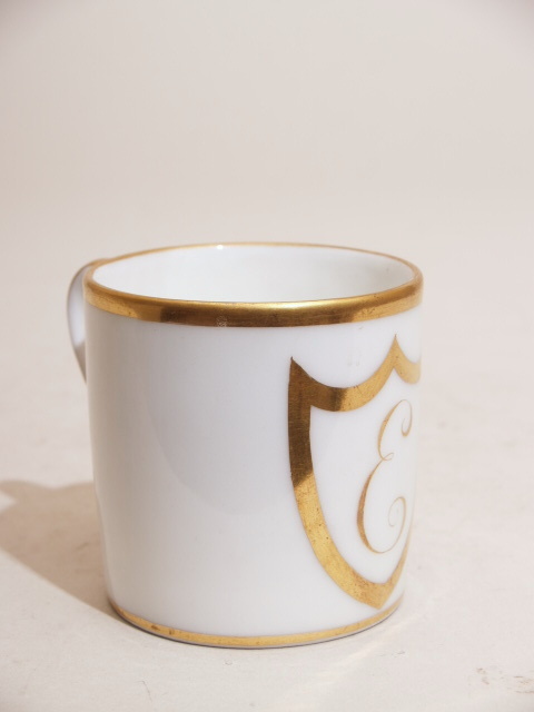 Kop met decor van schild met letter 'E'