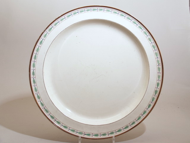 Bord met decor van gestileerde bloemrand in blauw en...