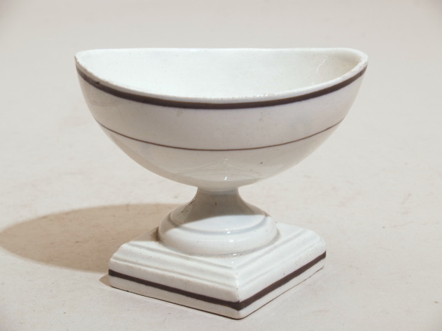Zoutvat met decor van 3 zwarte biezen op wit fond