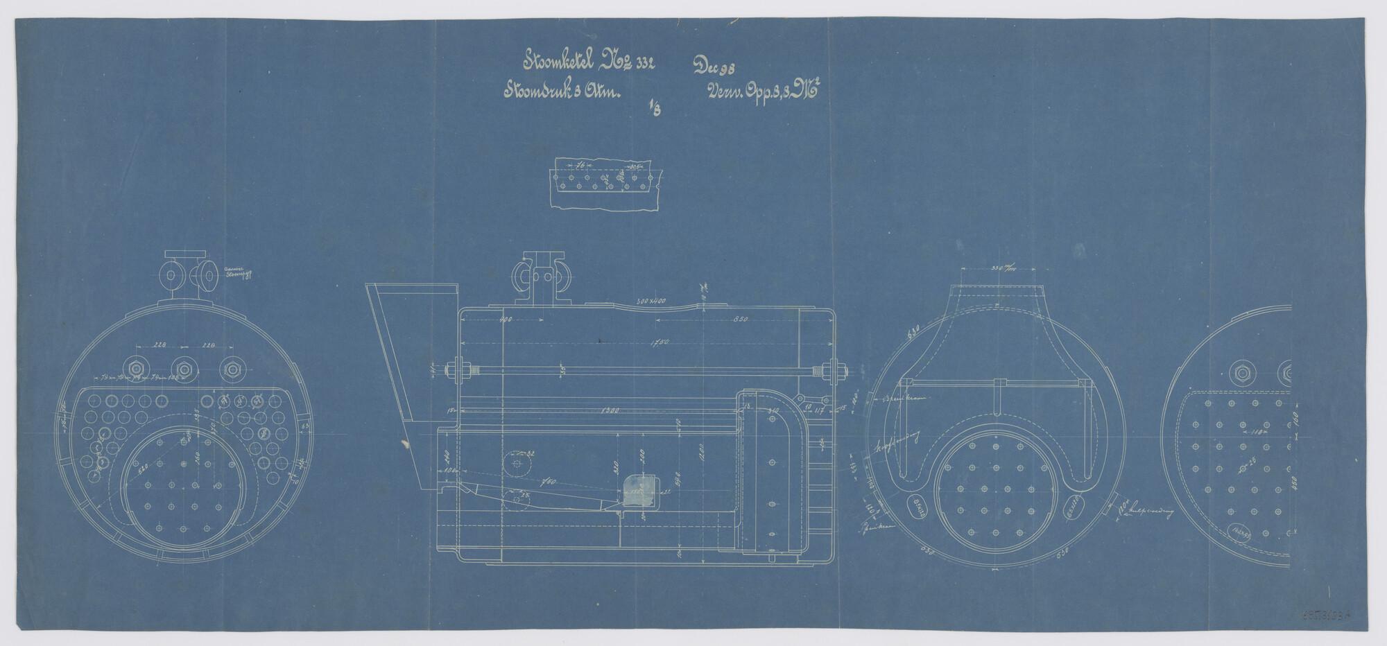 Dwarsdoorsnede plaatsing machine en ketel in de dire...