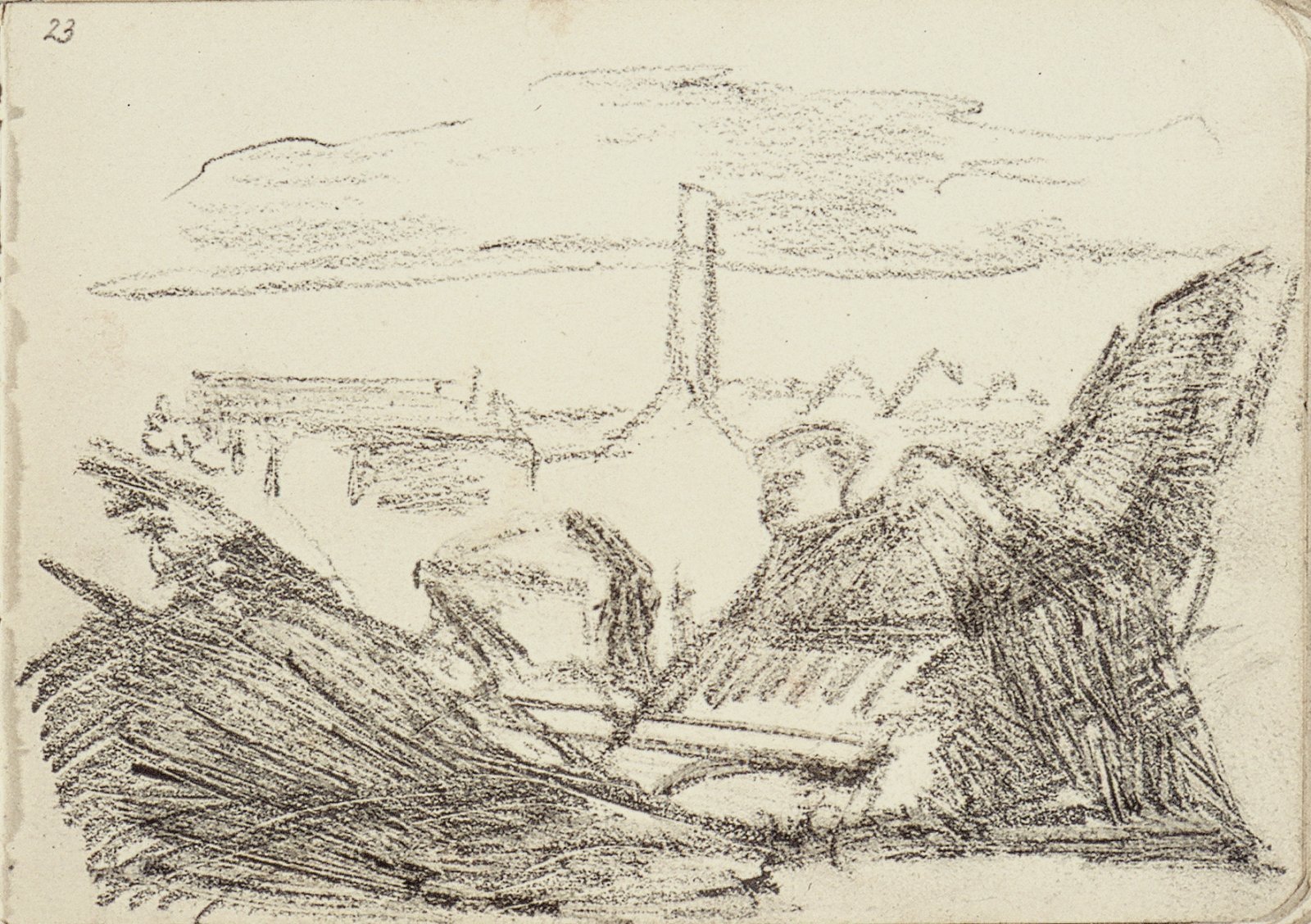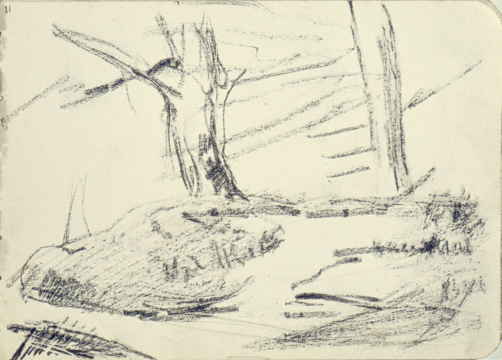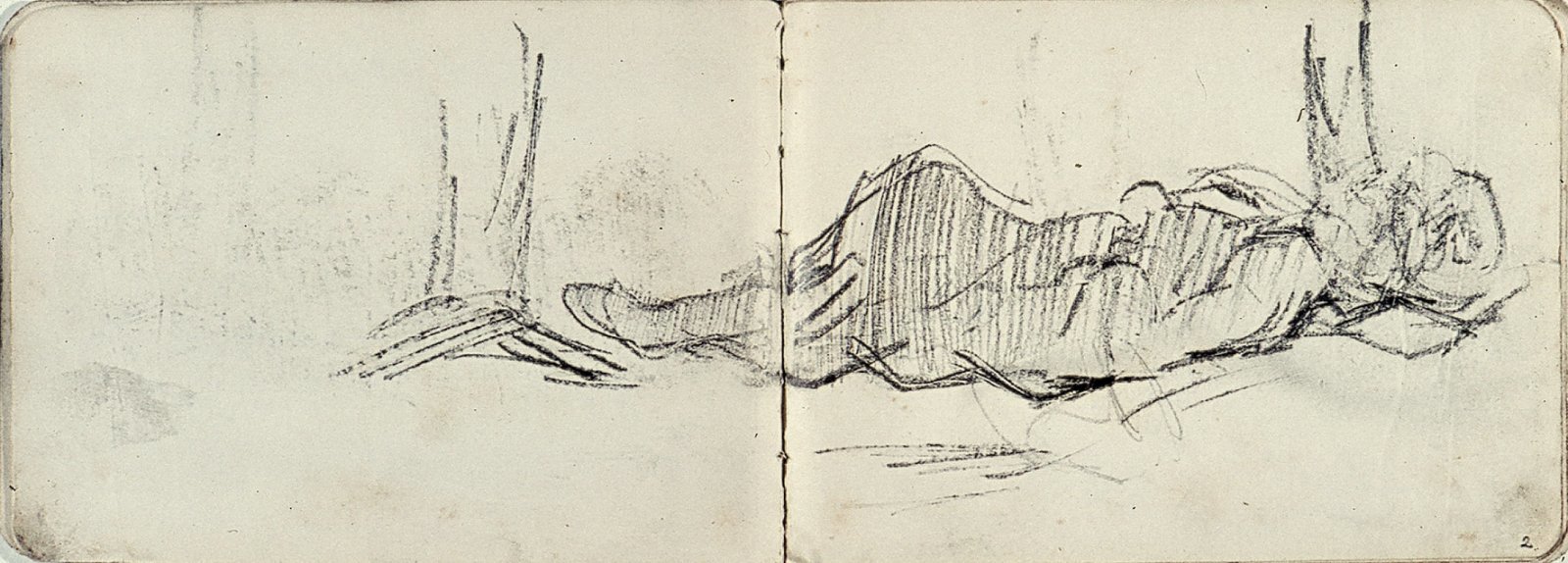 Liggende vrouw tussen bomen
