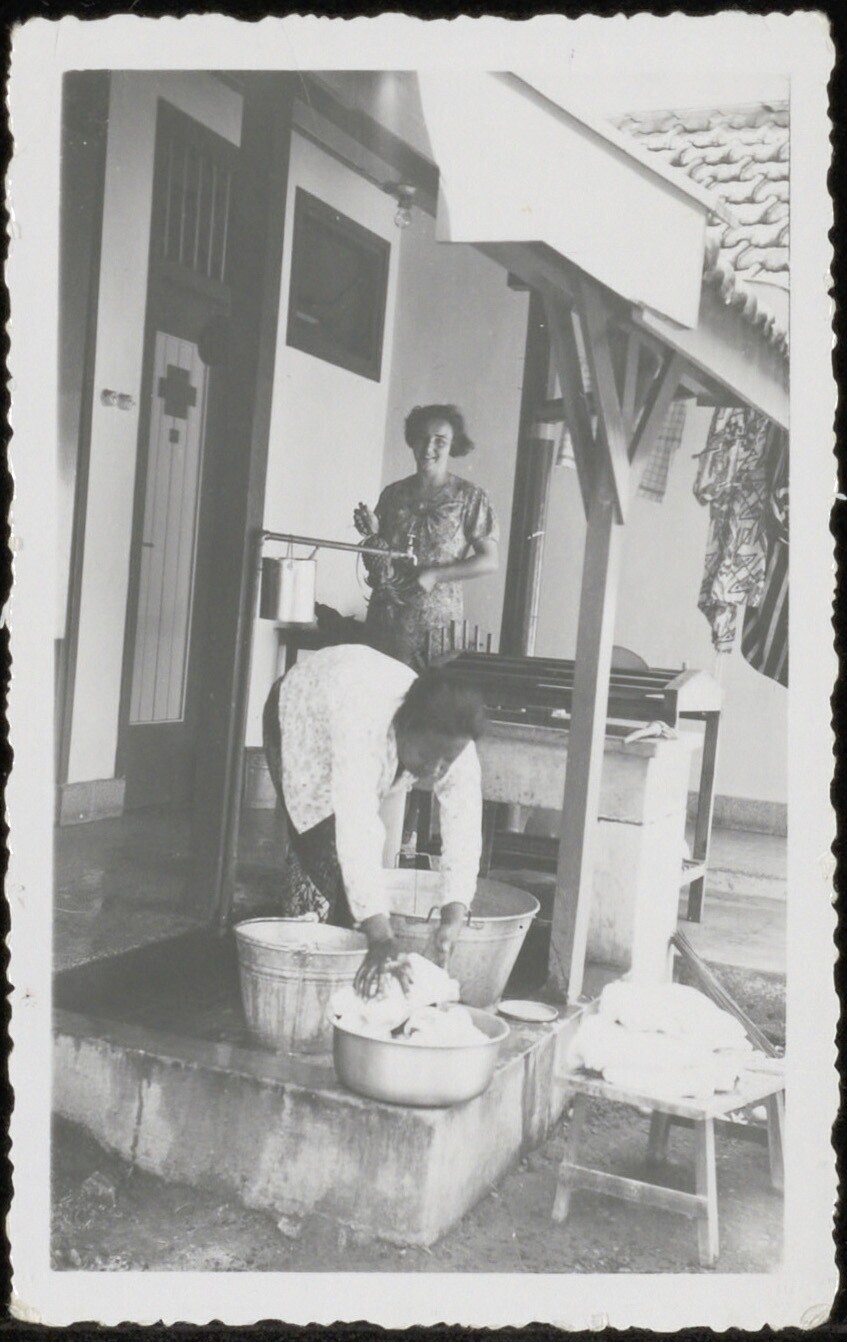Twee vrouwen, waarvan er één de was doet