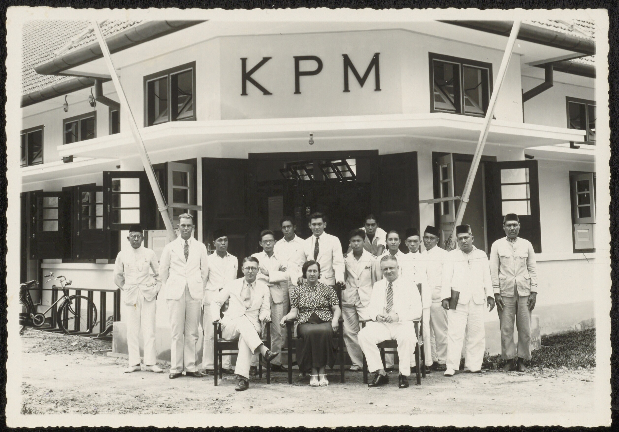 Groepsportret voor een gebouw van de KPM