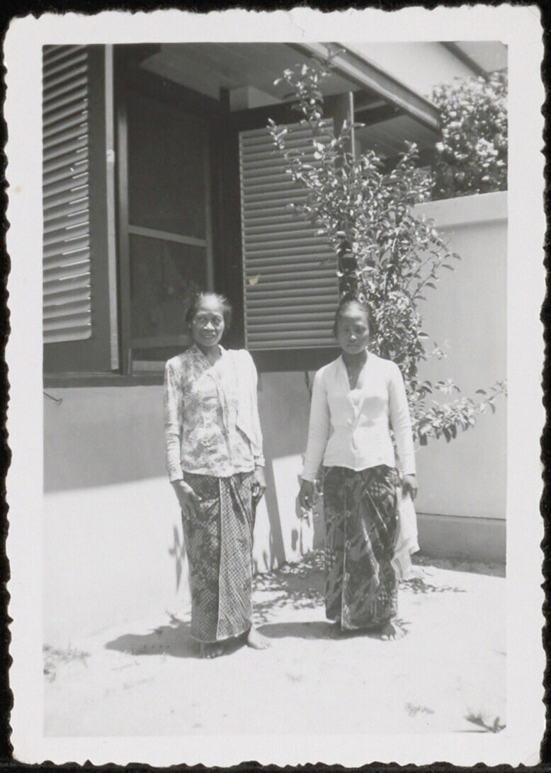Portret van twee vrouwen voor het slaapkamerraam