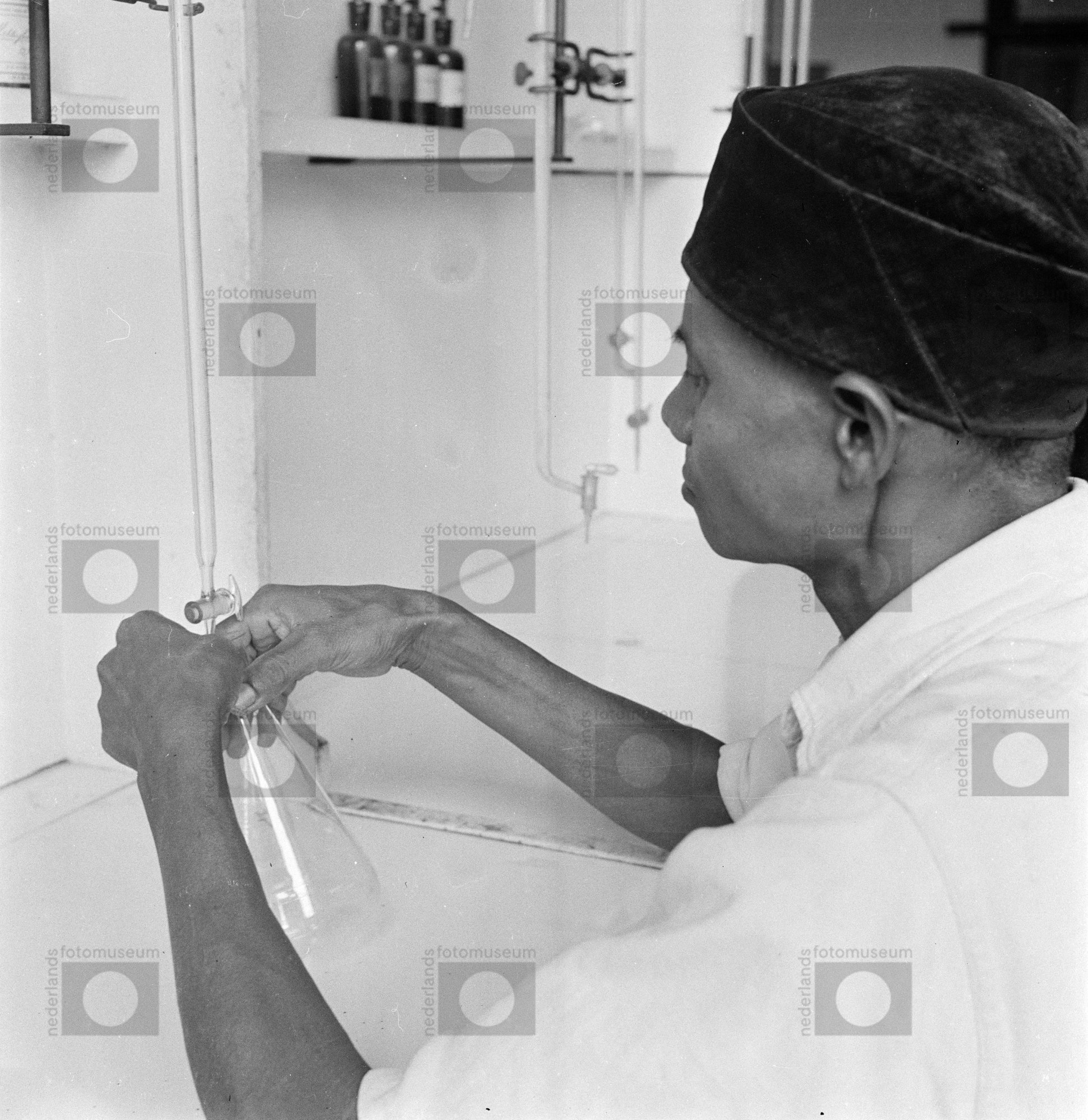 Een onderzoeker aan het werk in een landbouw-laborat...