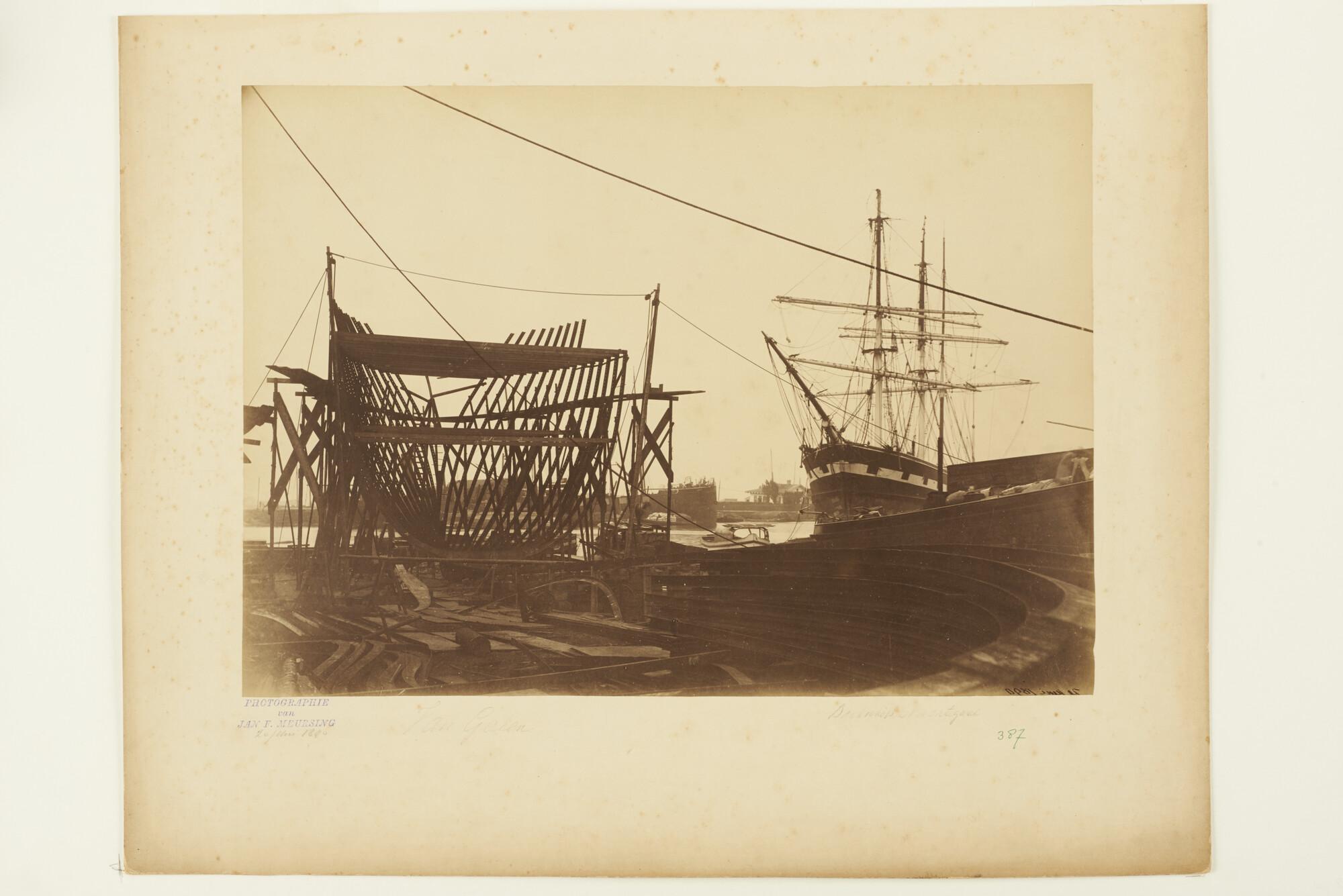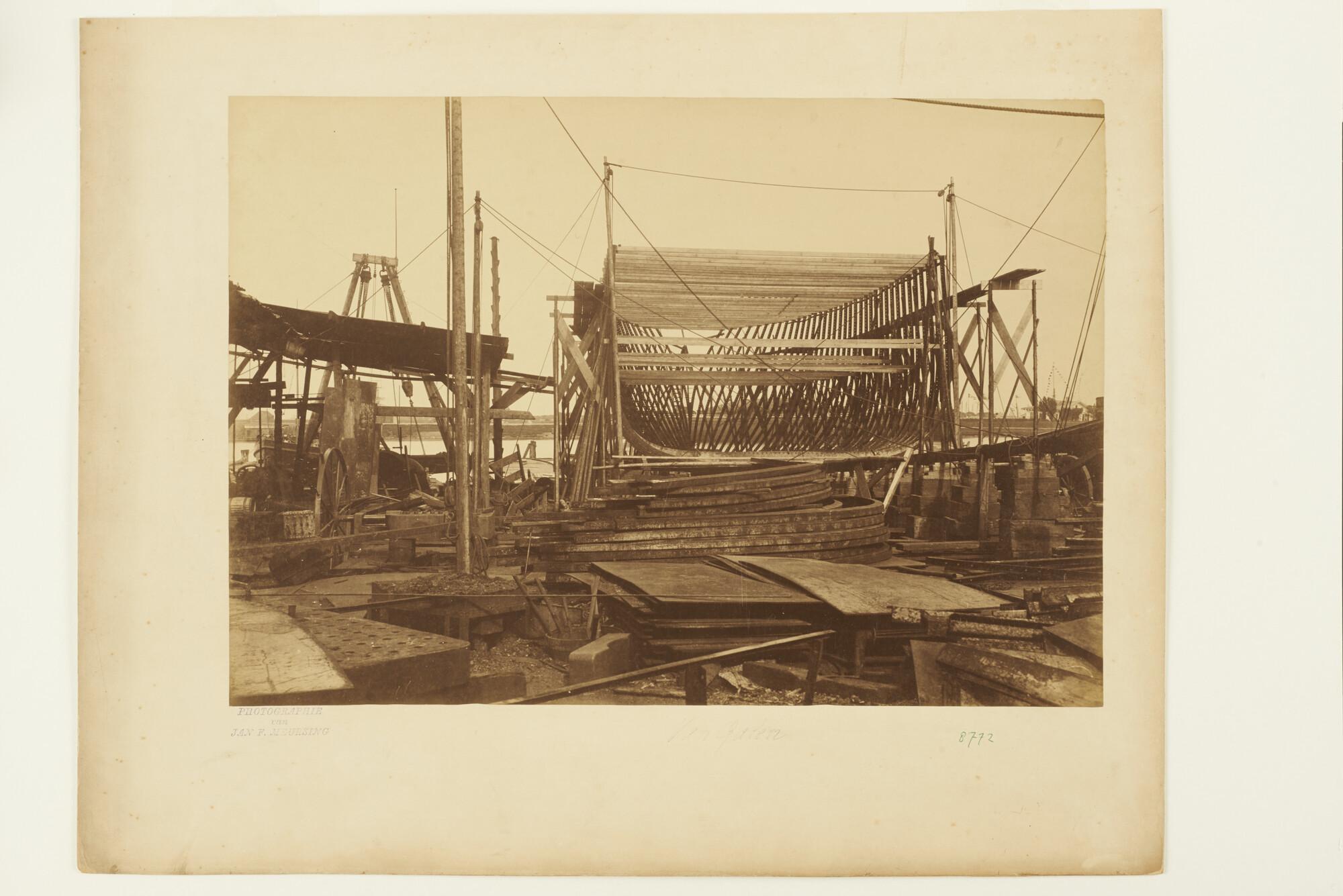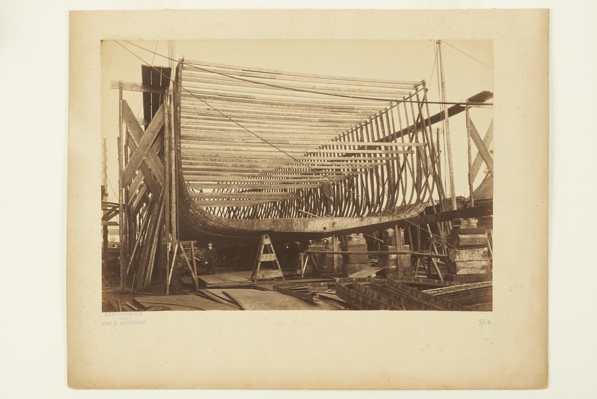 Het stalen barkschip Van Galen in aanbouw op de werf...