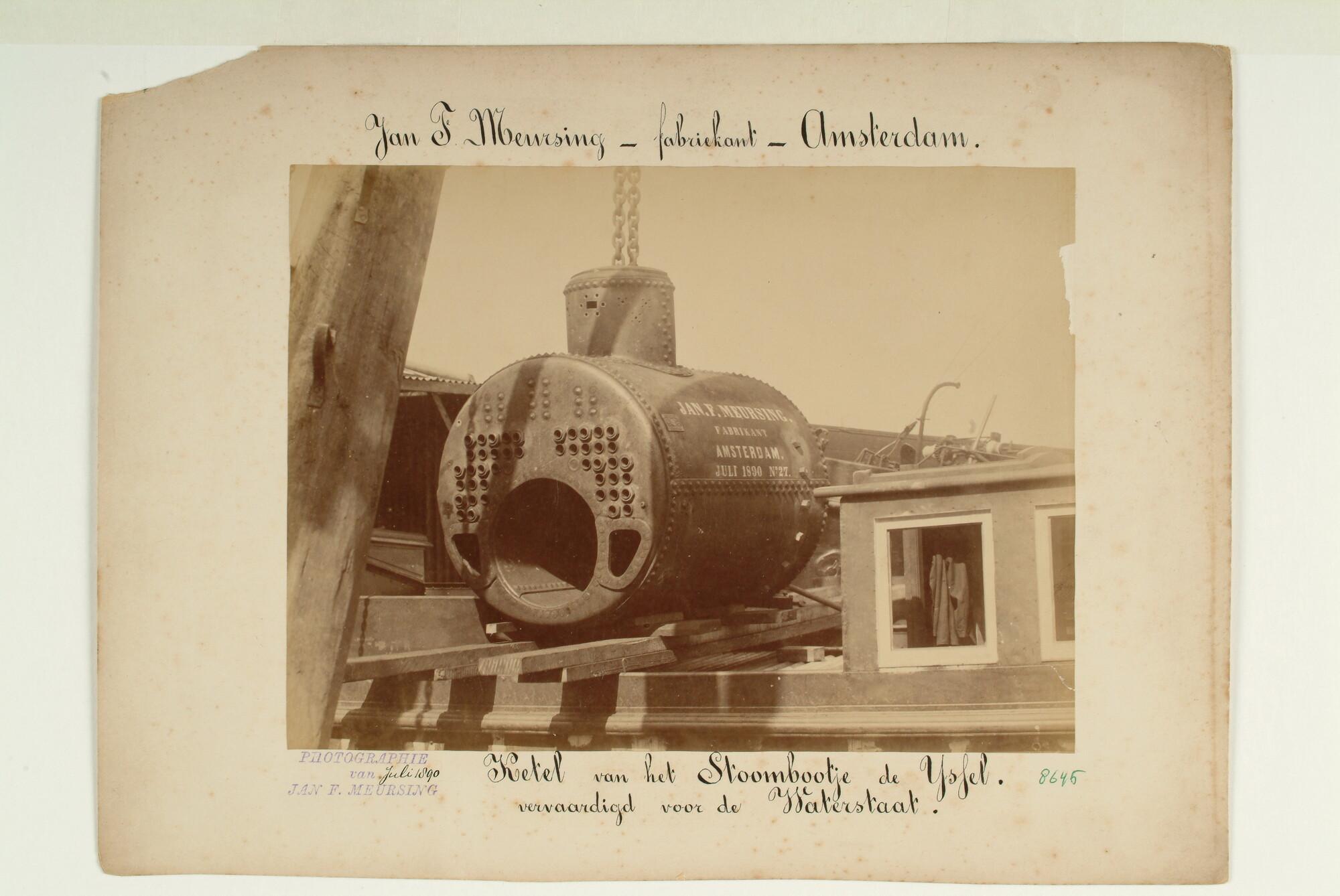 Foto van de stoomketel (nummer 27) gebouwd voor het ...