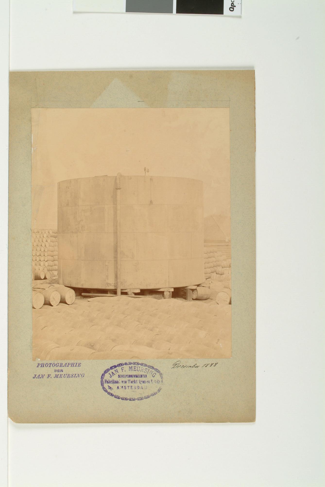 Een tank of gashouder in aanbouw op de werf De Nacht...