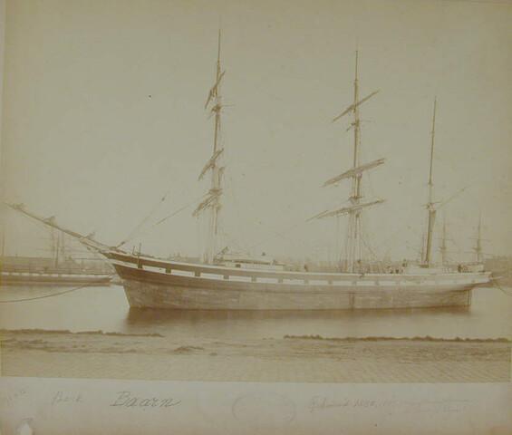 De driemast houten bark 'Baarn', gebouwd op de werf ...