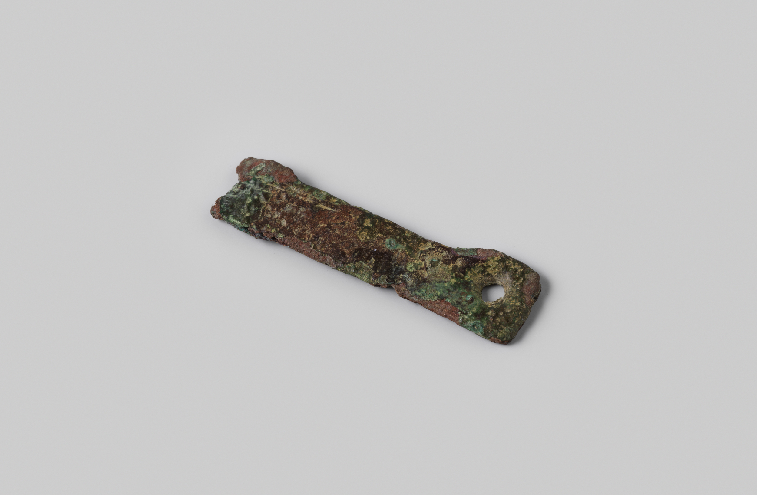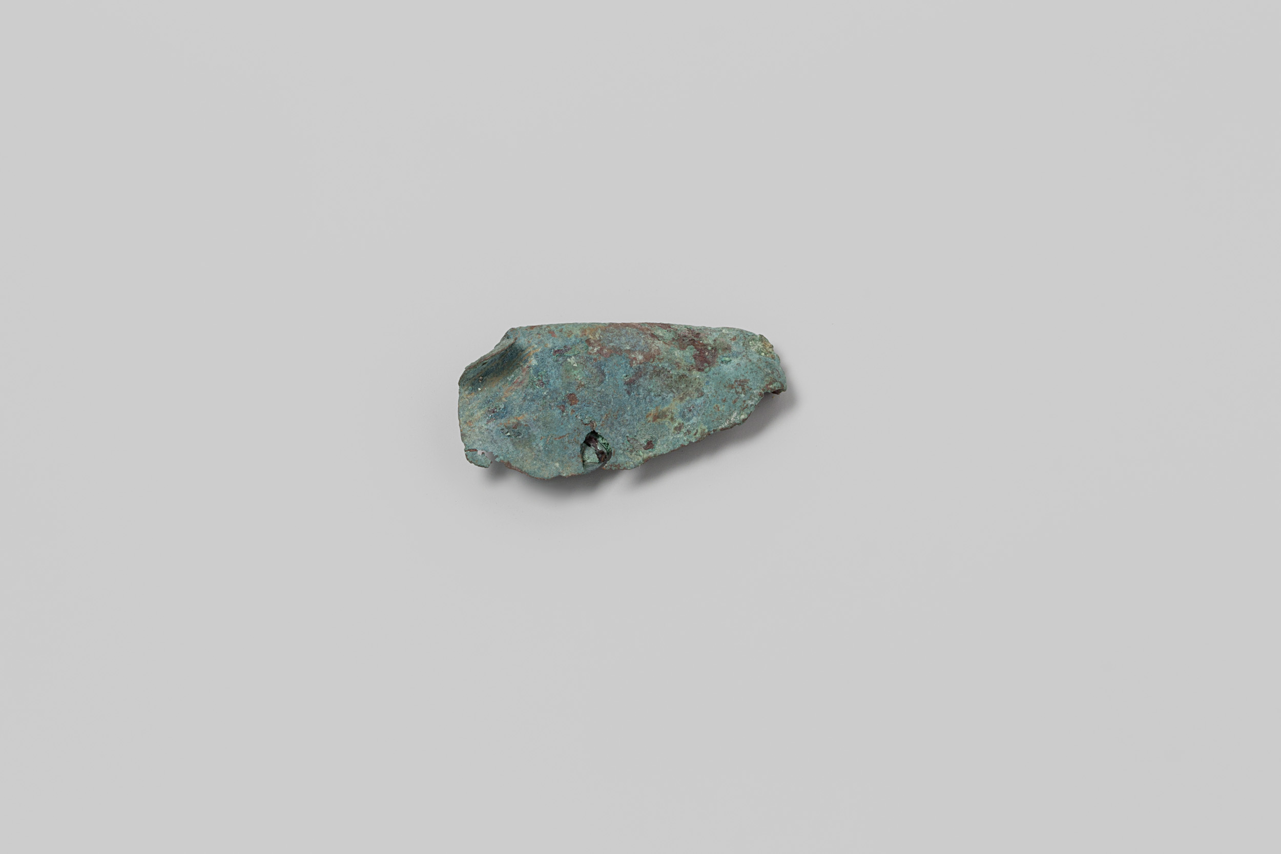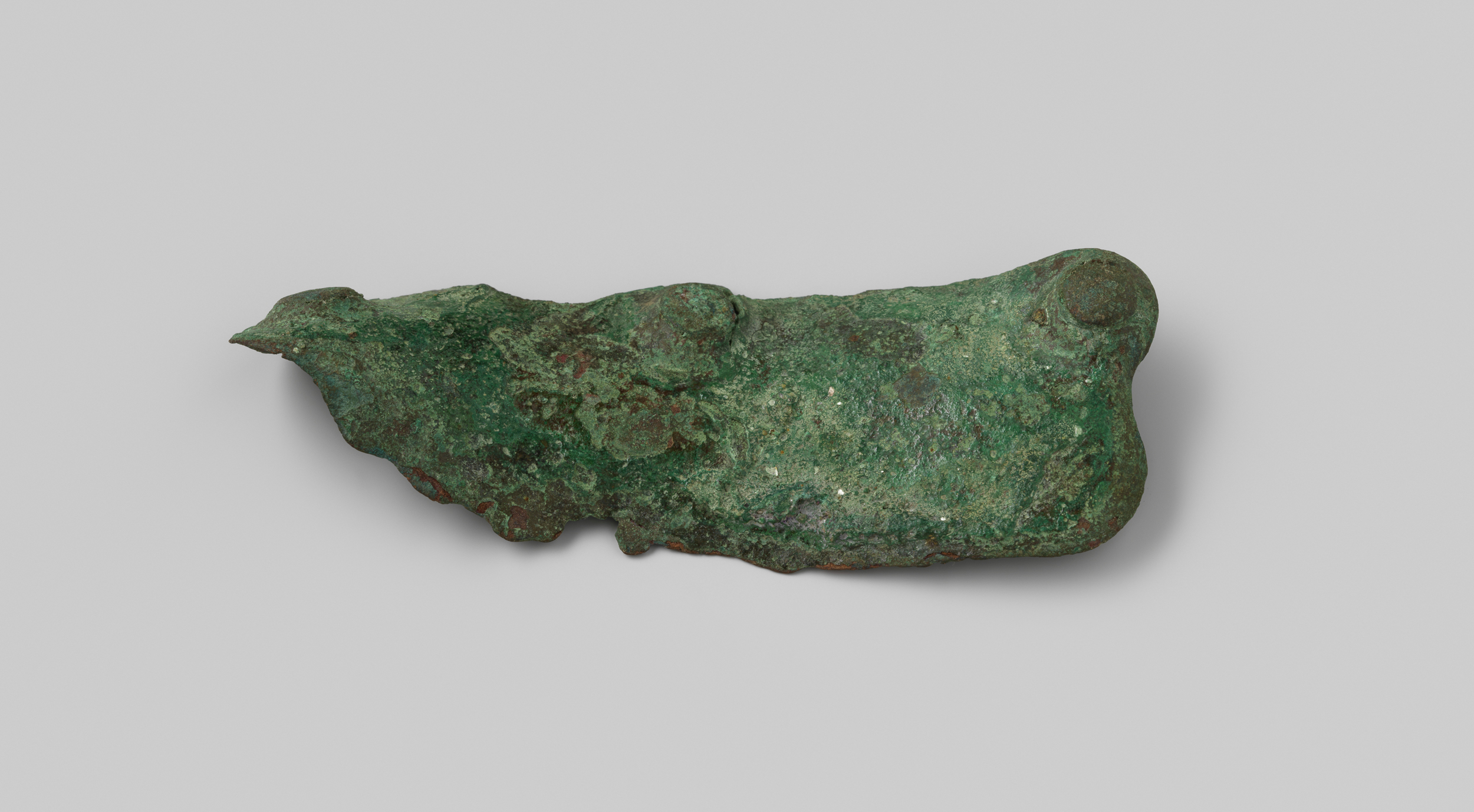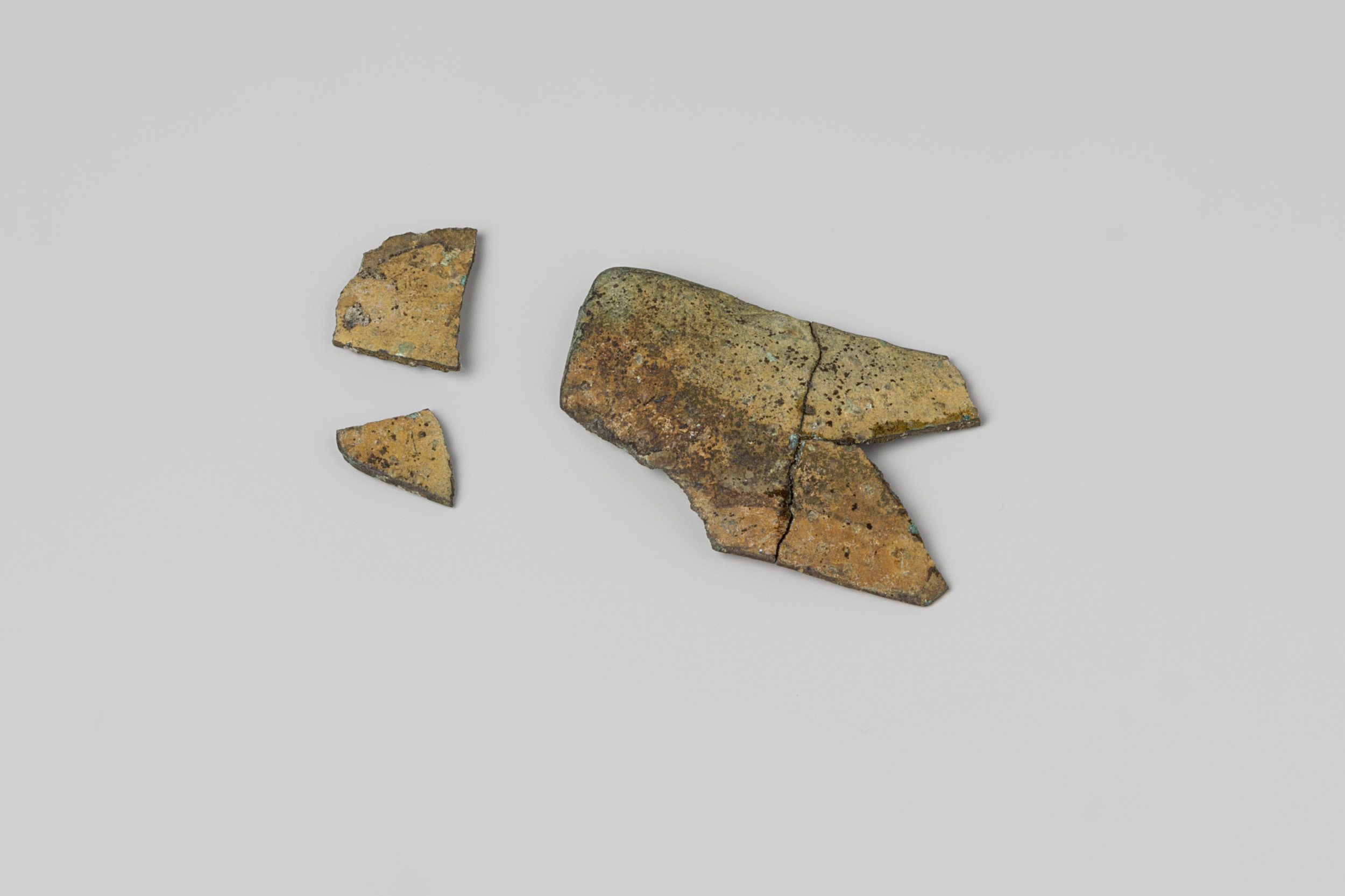 Fragment koperen plaatwerk met klinknagels uit het w...