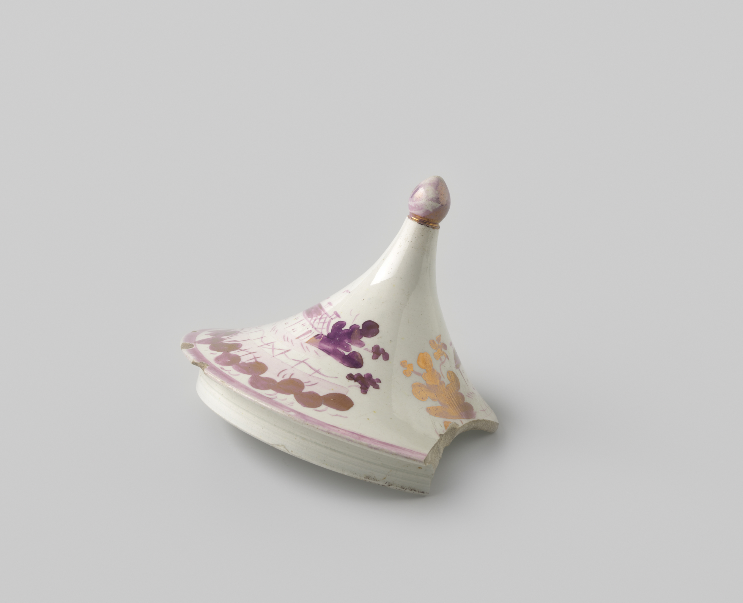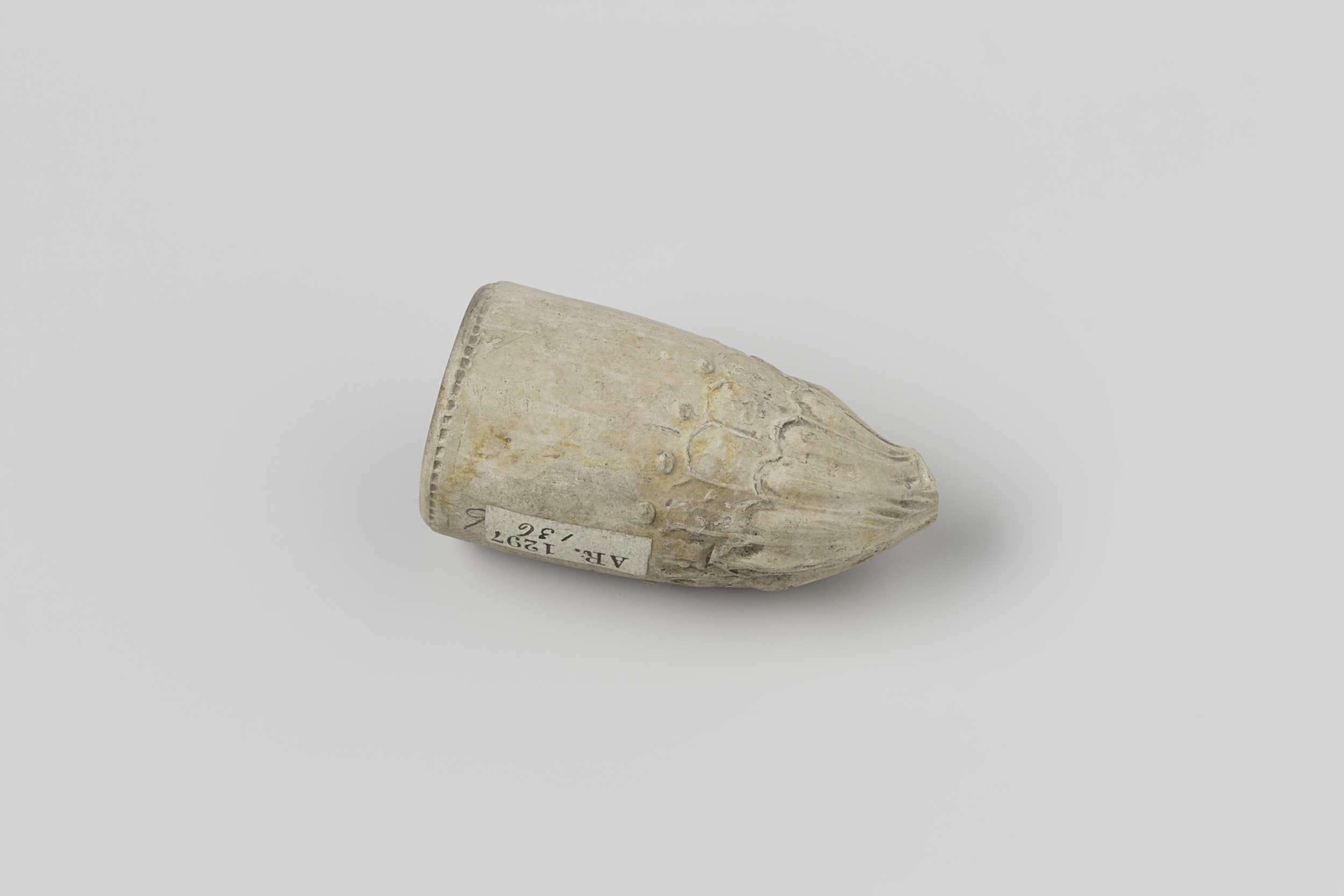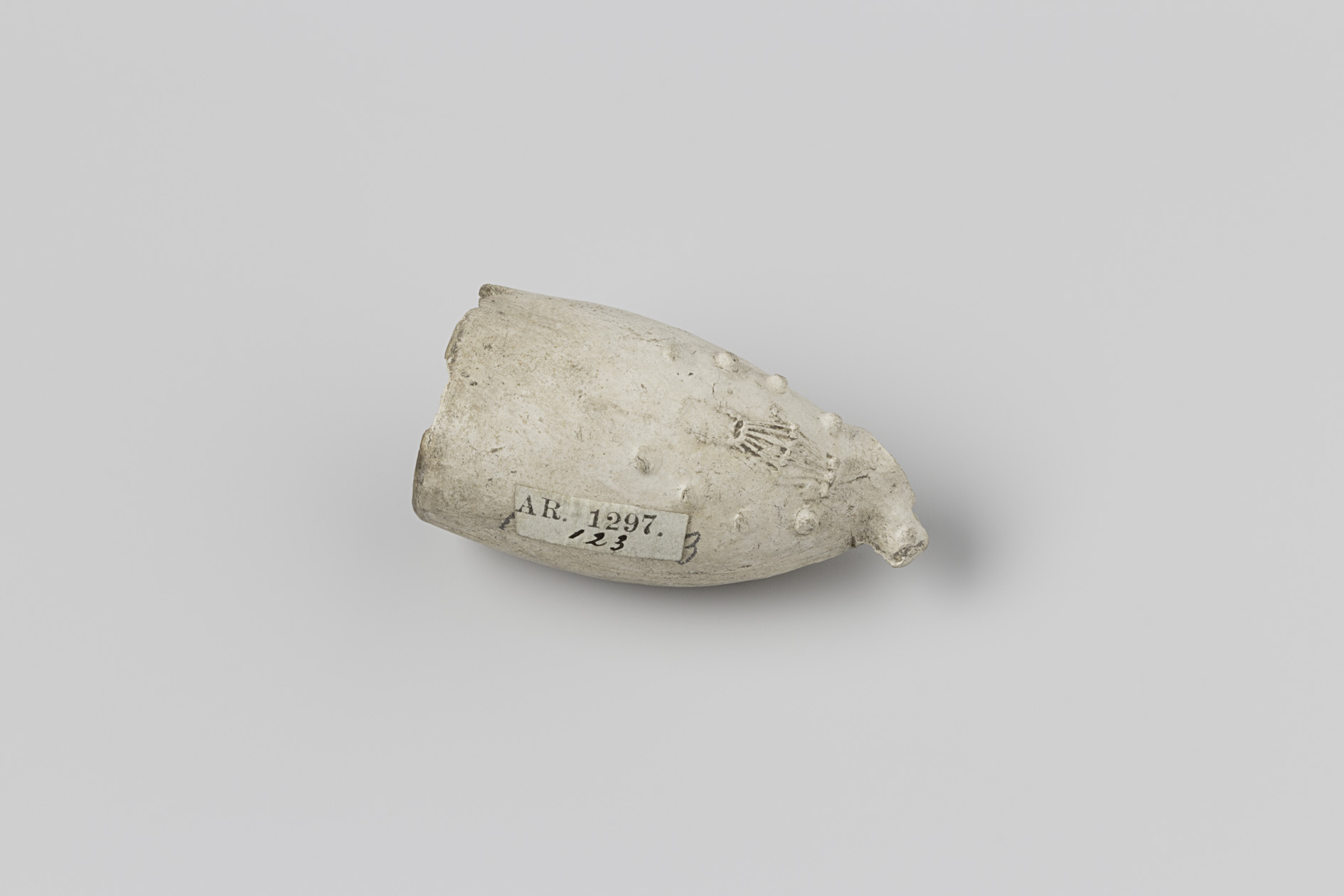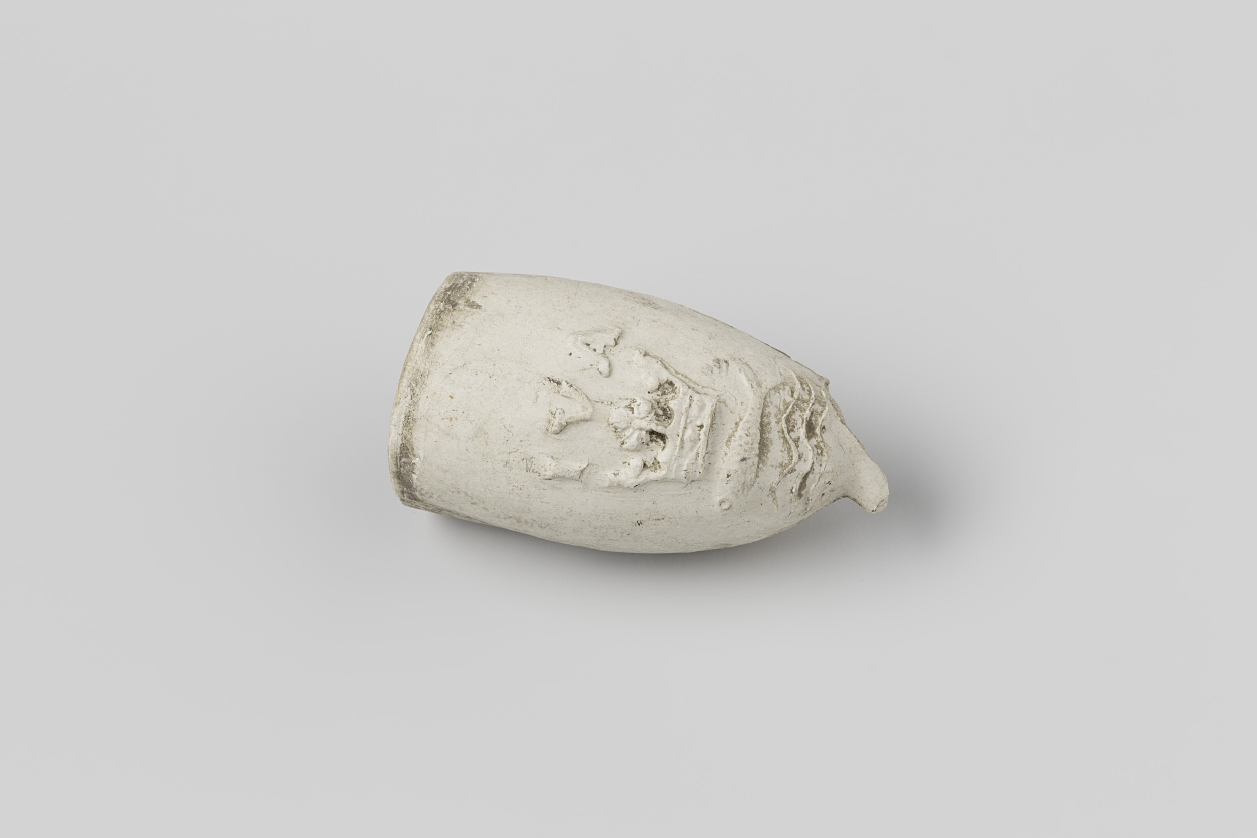 Fragment van een deksel van witbakkend aardewerk, vo...
