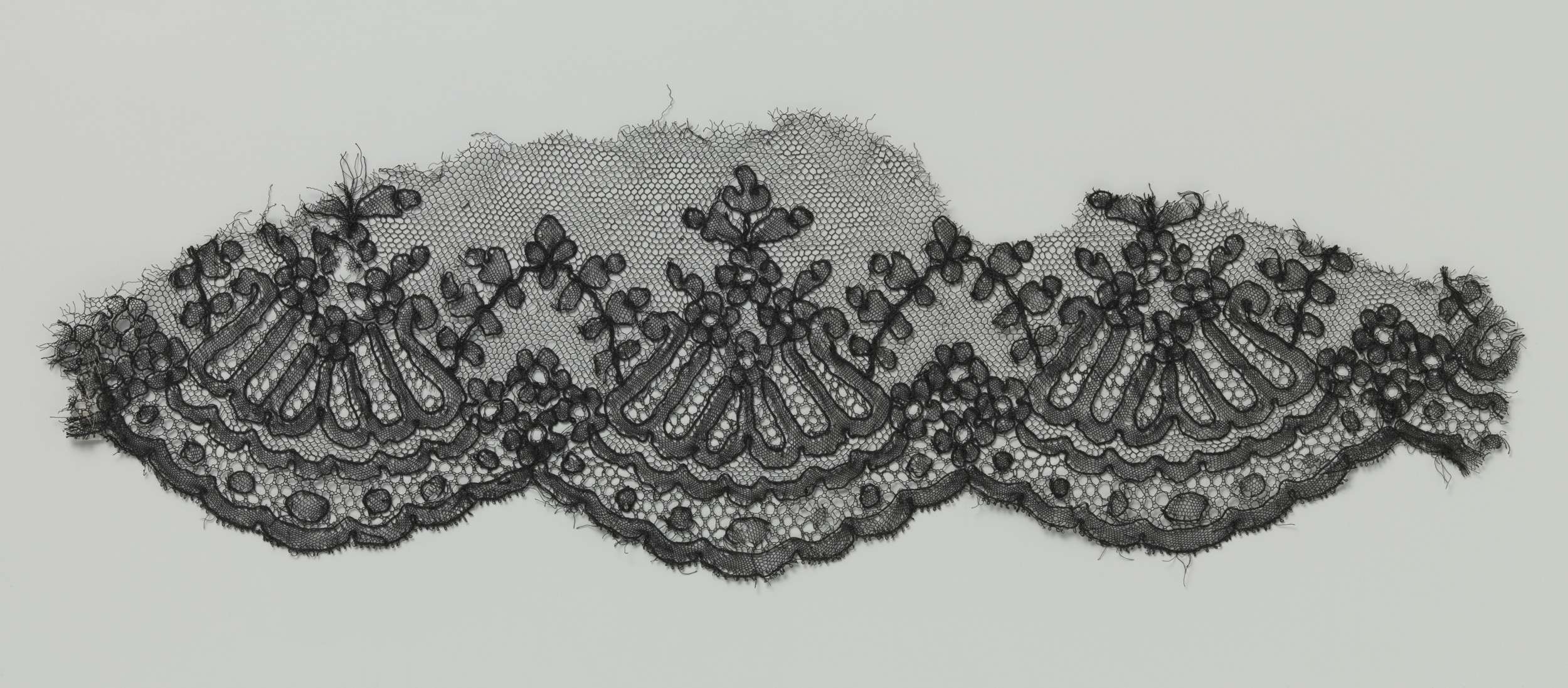 Fragment van kloskant met bloempjes tussen c-voluten...