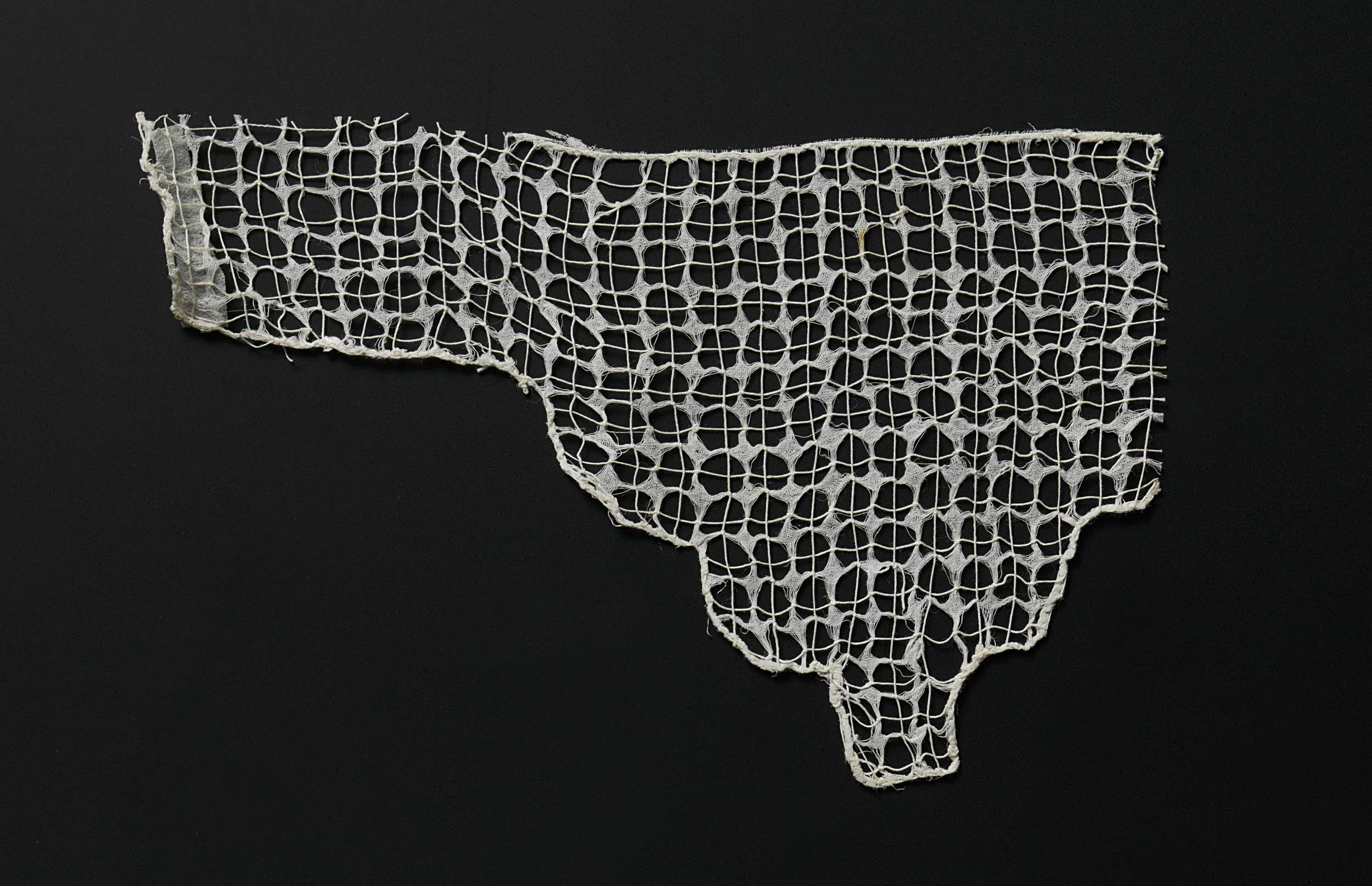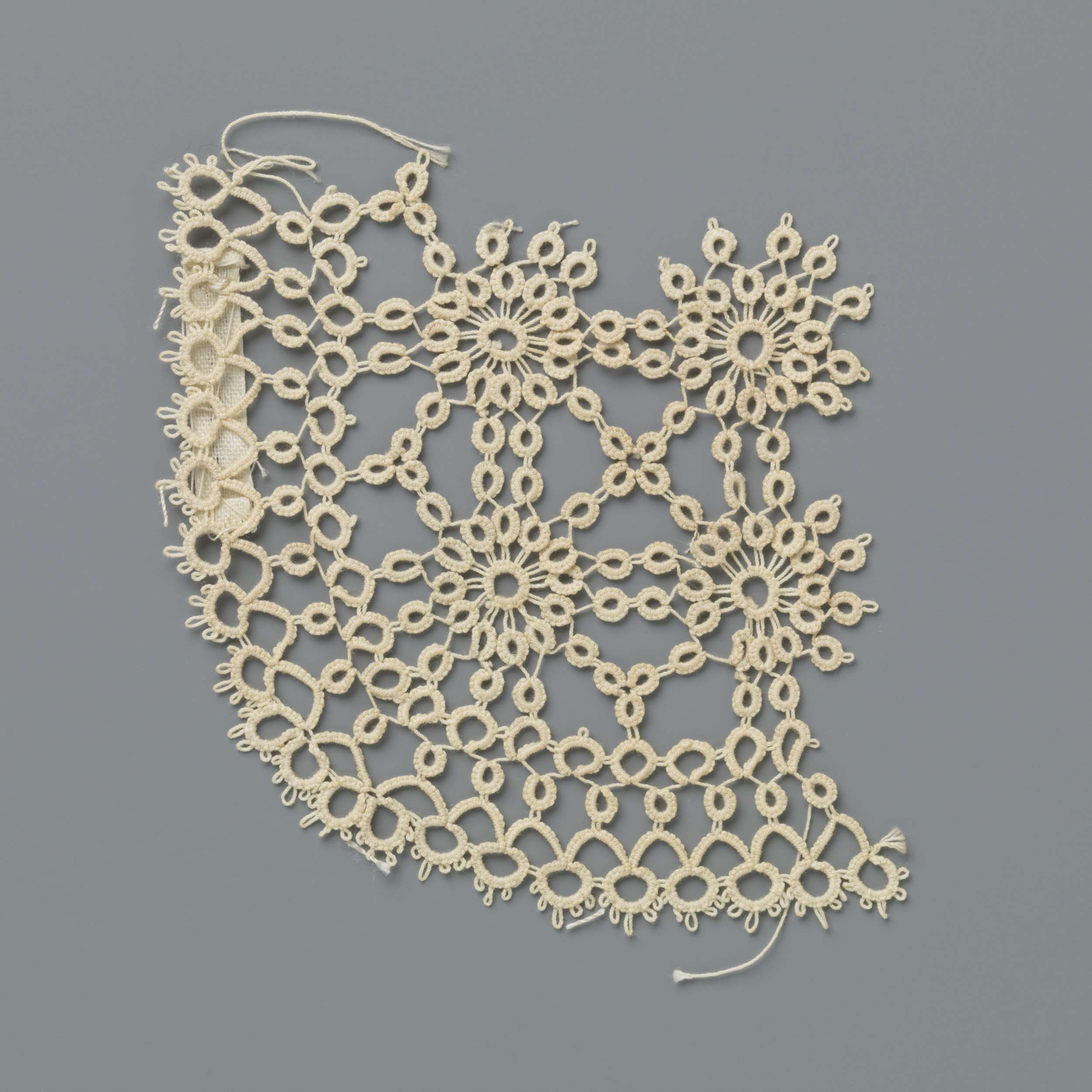 Fragment kantborduurwerk met vierpuntige sterren in ...