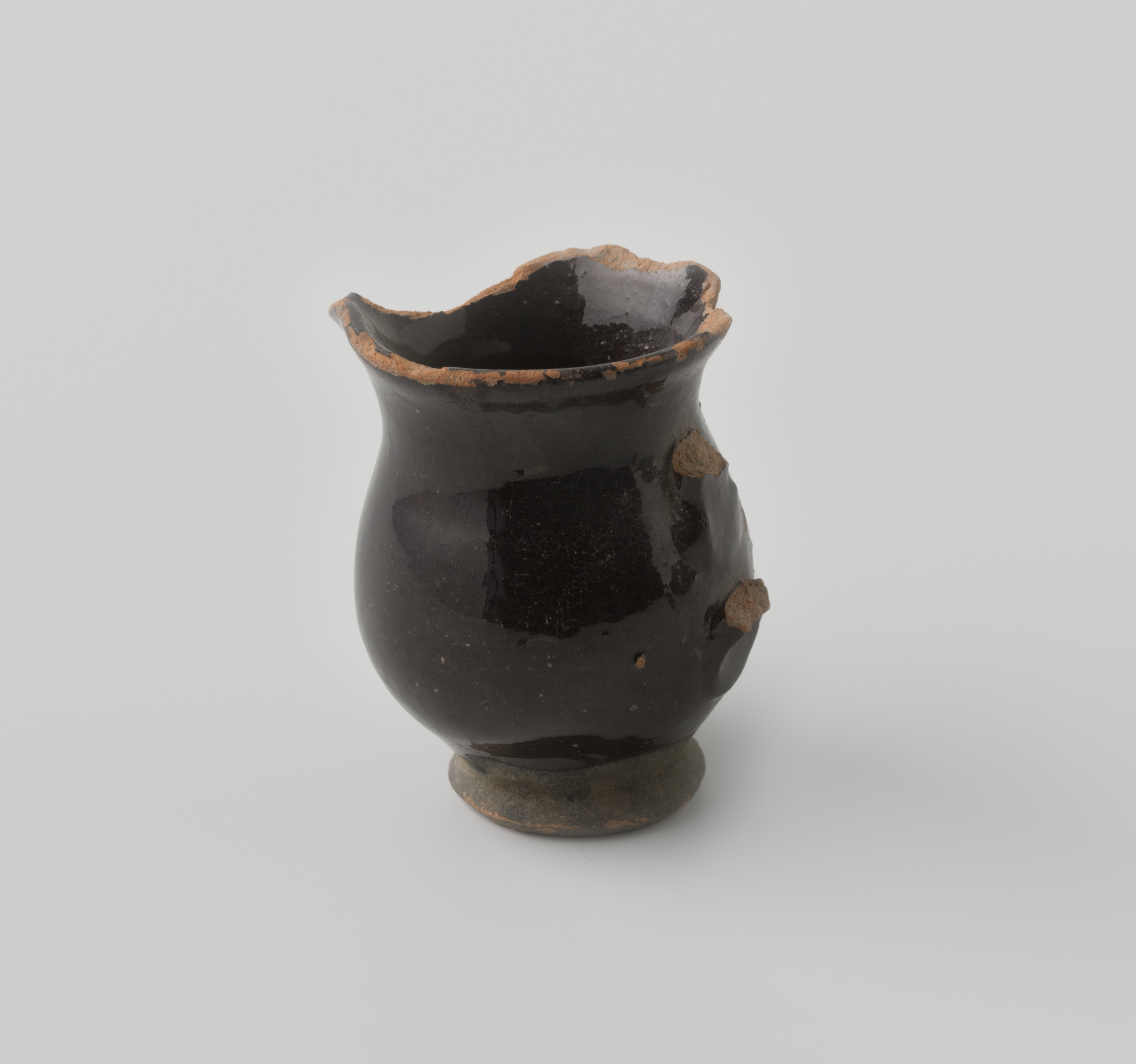 Kan, beschadigd, van roodbakkend aardewerk voorzien ...