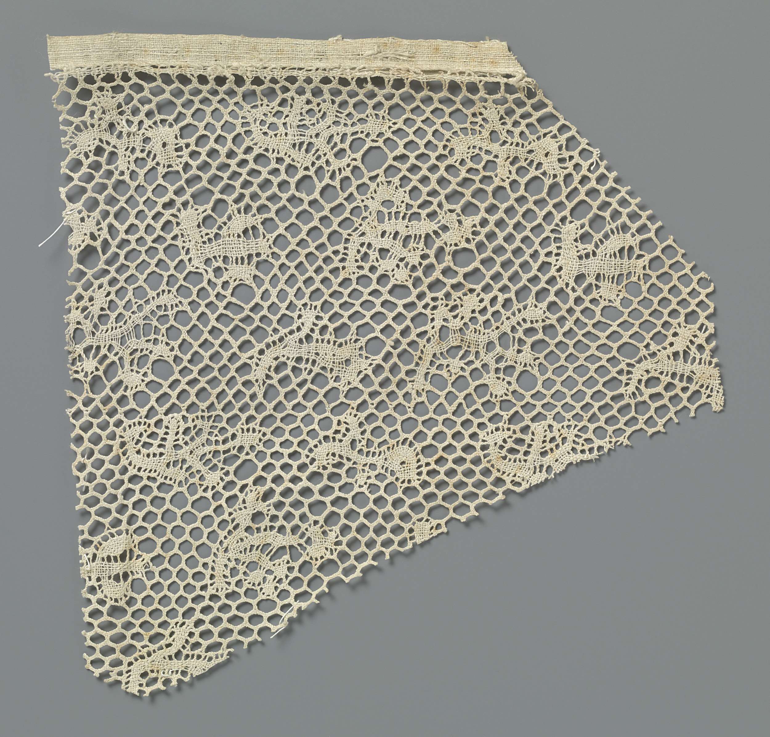 Fragment naaldkant met gekantelde vierkantjes