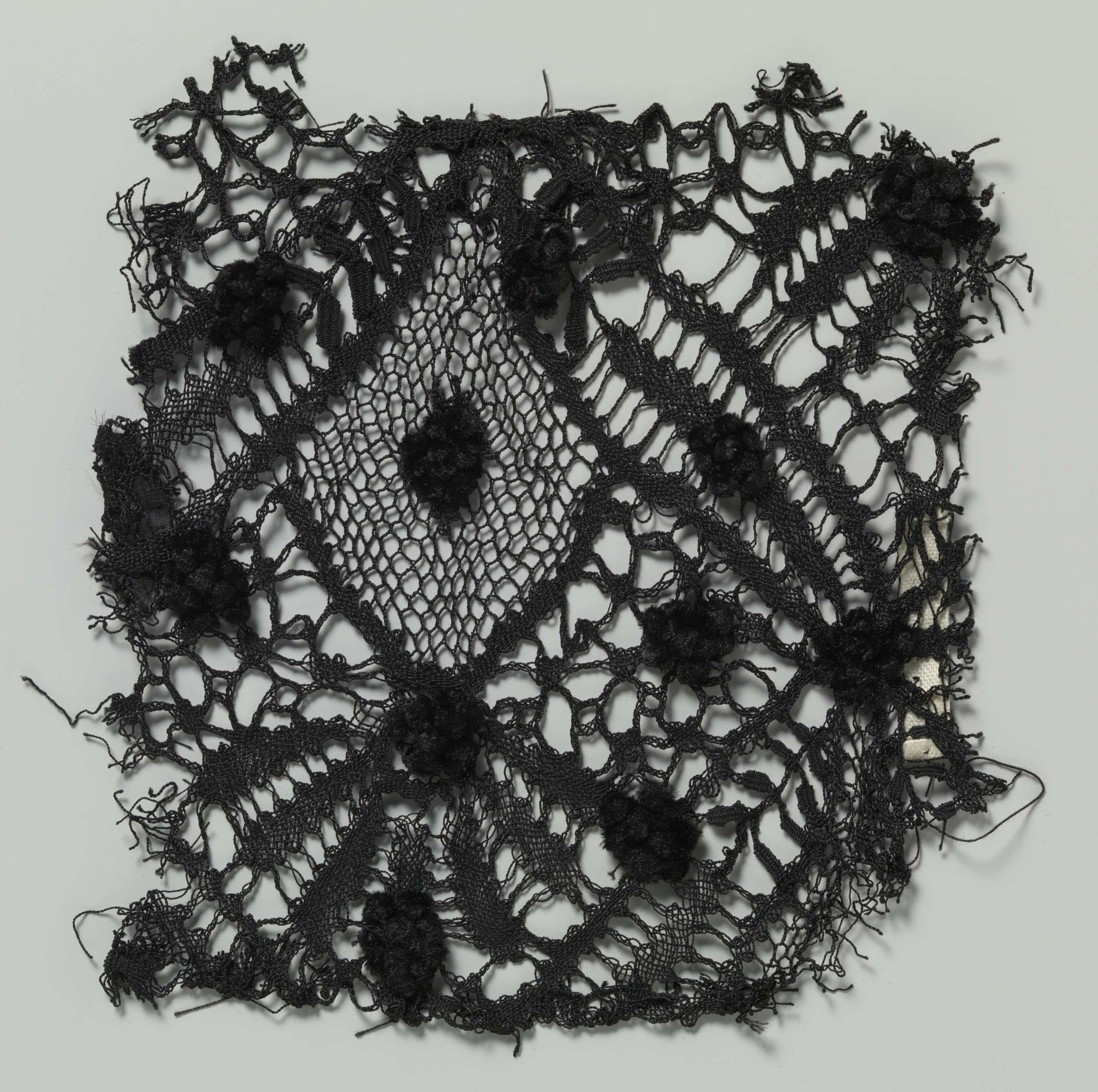 Fragment kloskant met strooipatroon van fluwelen sti...