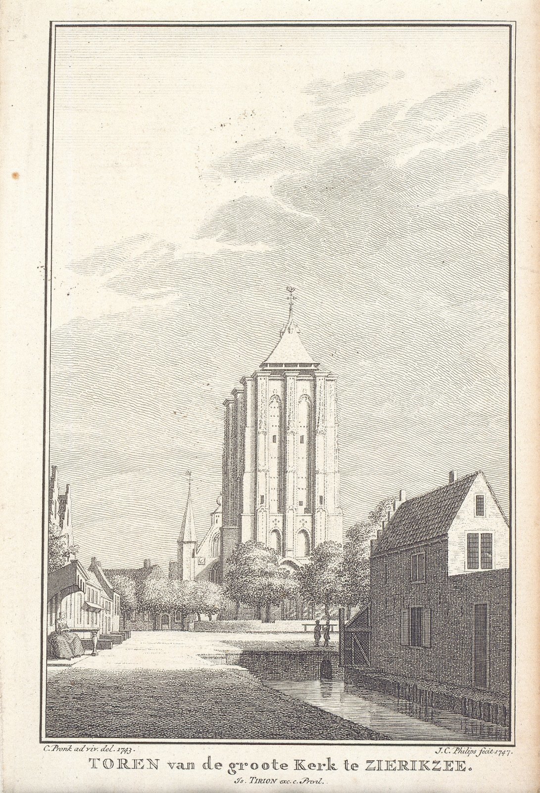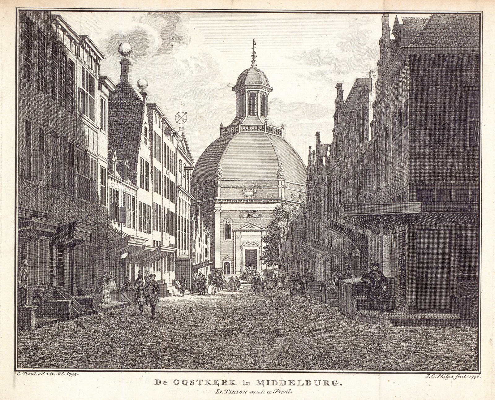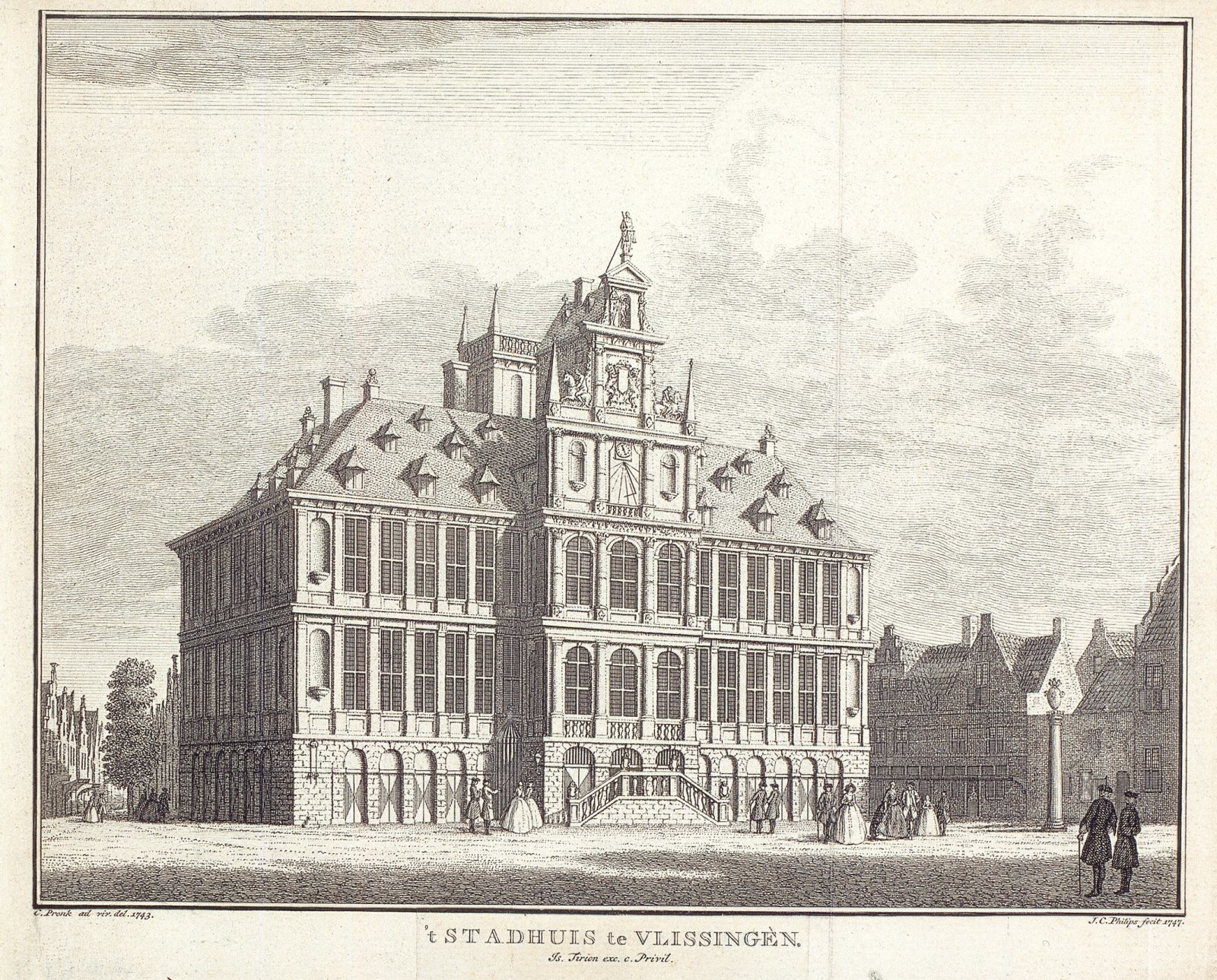 Gezigt langs de haven op den Abdy-toren te Middelburg