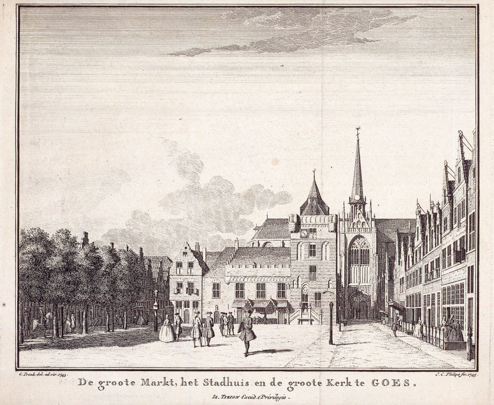 De groote Markt, het Stadhuis en de groote Kerk te G...