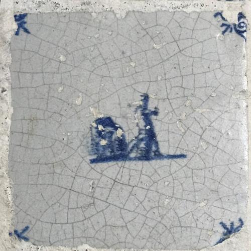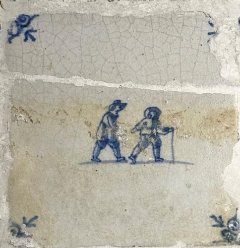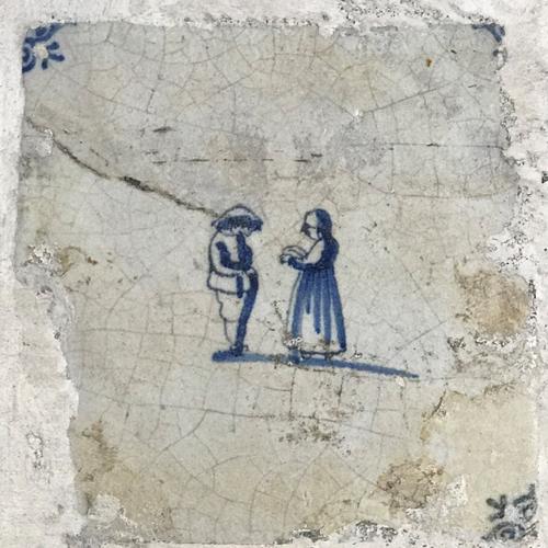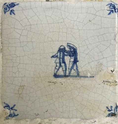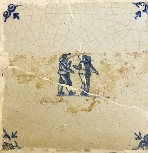 Tegel van aardewerk met tinglazuur voorstellende ?- ...