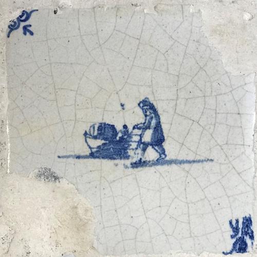Tegel van aardewerk met tinglazuur voorstellende op ...
