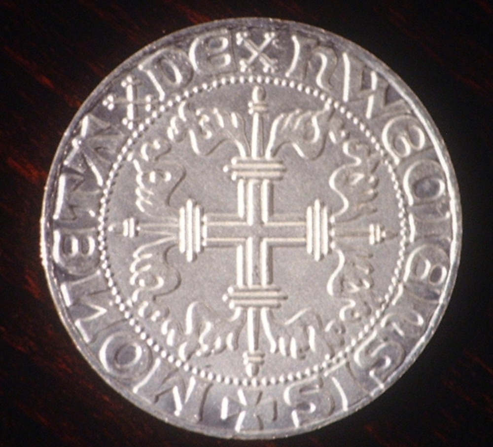 Boes de carnavalsmunt met aan een zijde replica van ...