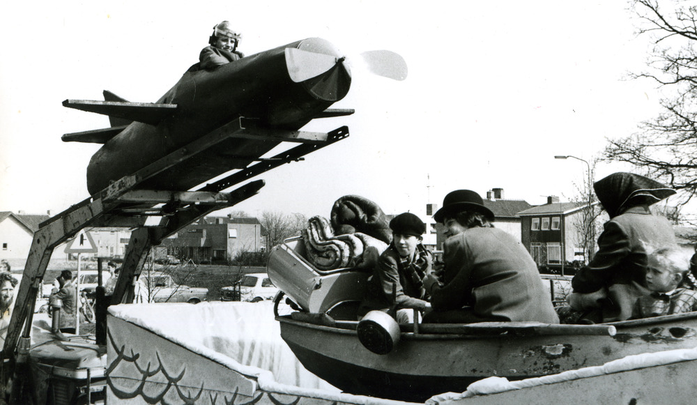 Zwart-wit foto van het schuttersfeest in Spijk 1978