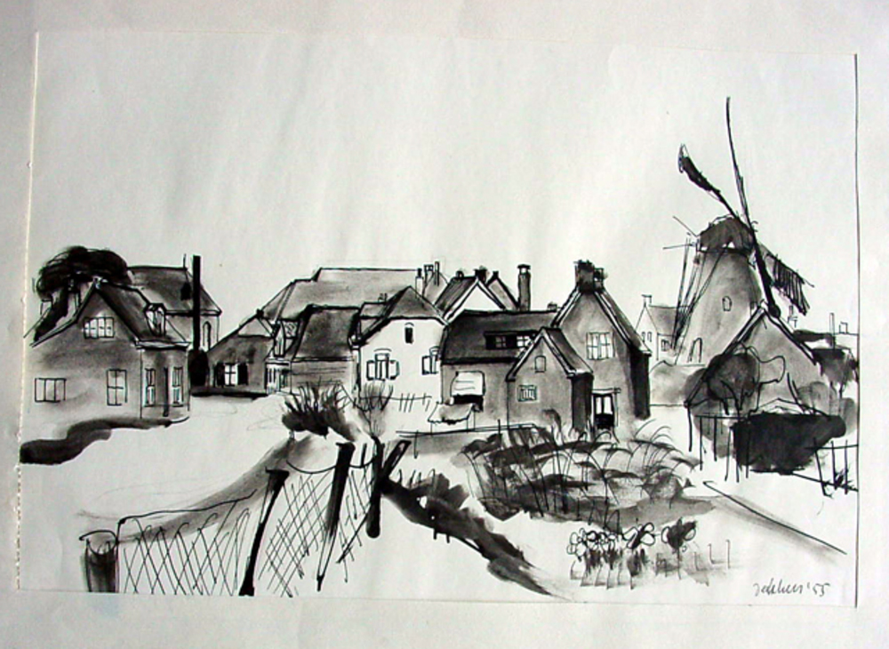 Tekening op papier met Oost-Indische inkt van Wijnbe...