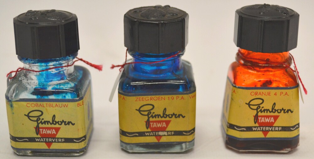 Fles van glas gevuld met Titanol plak door H. van Gi...