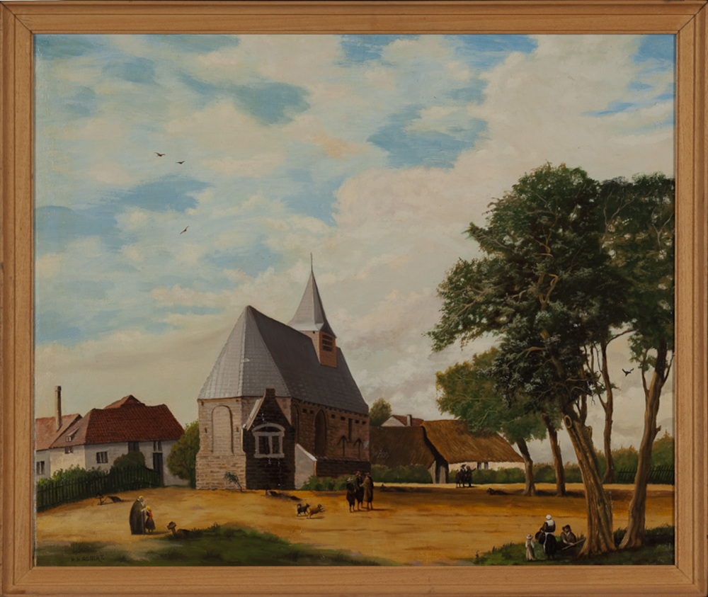 Schilderij van de kapel te Loo in 1742, olieverf op ...