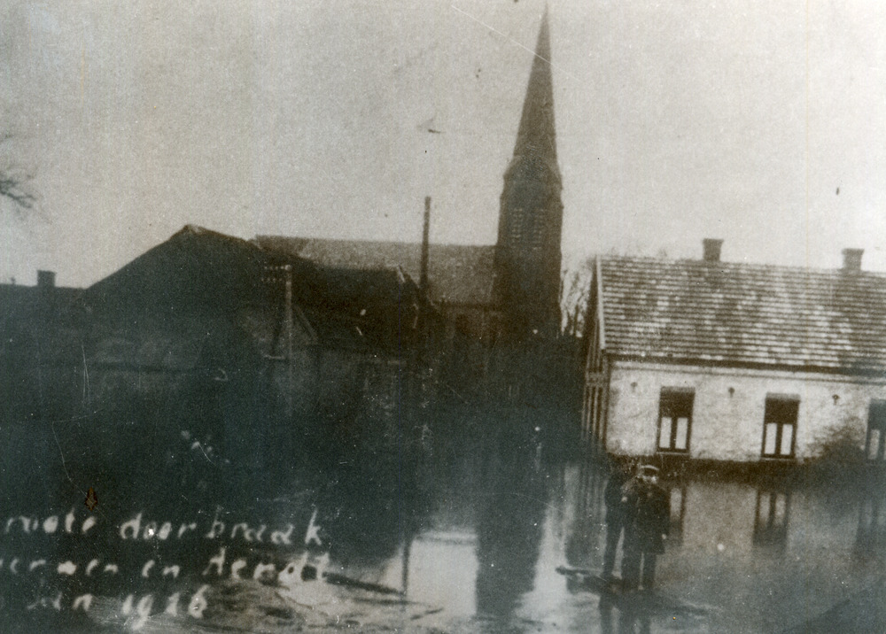 Zwart-wit foto van de overstroming in Herwen en Aerd...