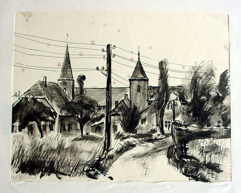 Tekening op papier met Oost-Indische inkt van Giesbe...