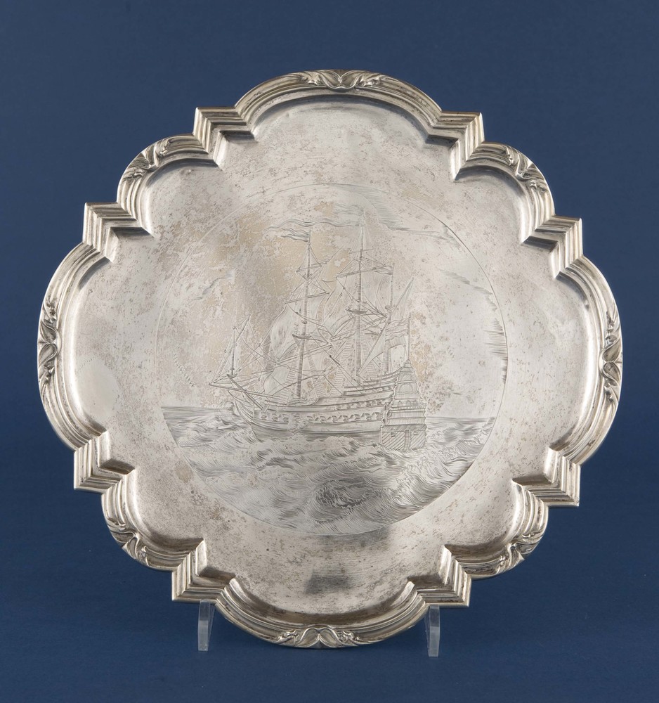 Schenkbord op voet met brede buitenrand, van zilver,...