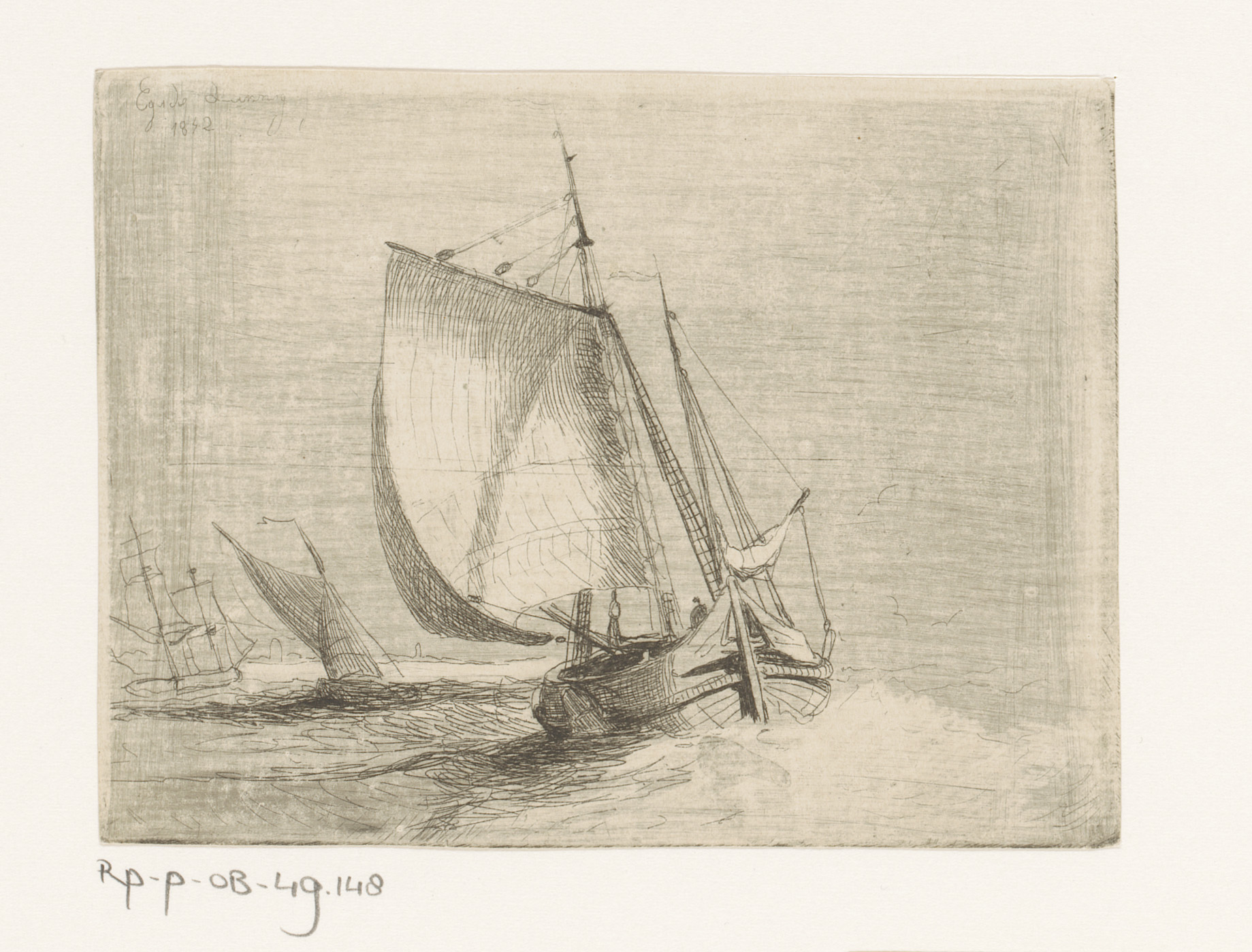 Zeilschepen en een raderstoomschip op zee