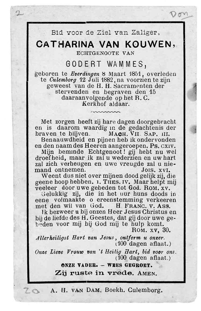 bidprent voor Catharina van Kouwen. Geboren 08-03-18...